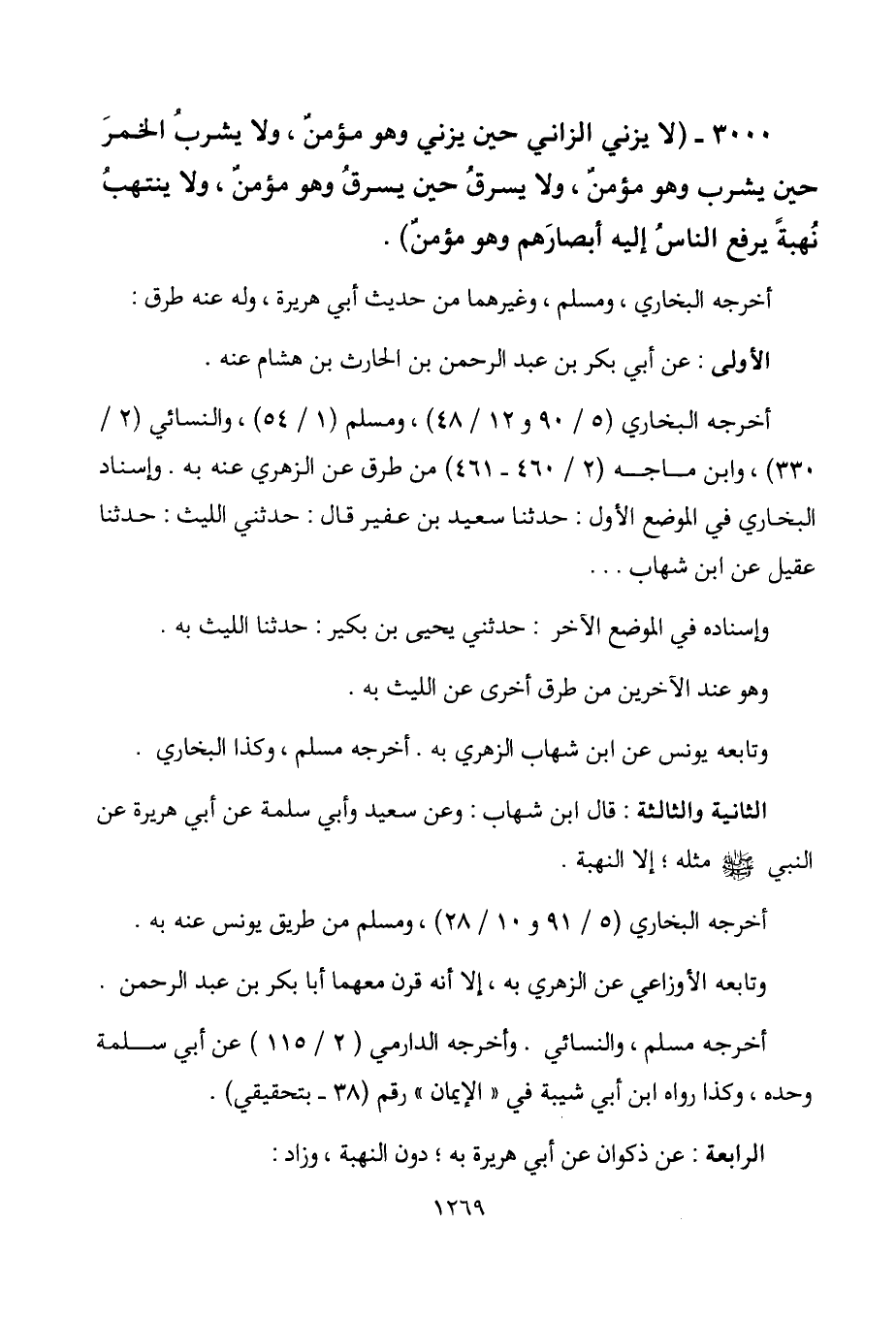 3000 - " لا يزني الزاني حين يزني وهو مؤمن، ولا يشرب الخمر حين يشرب وهو مؤمن،
