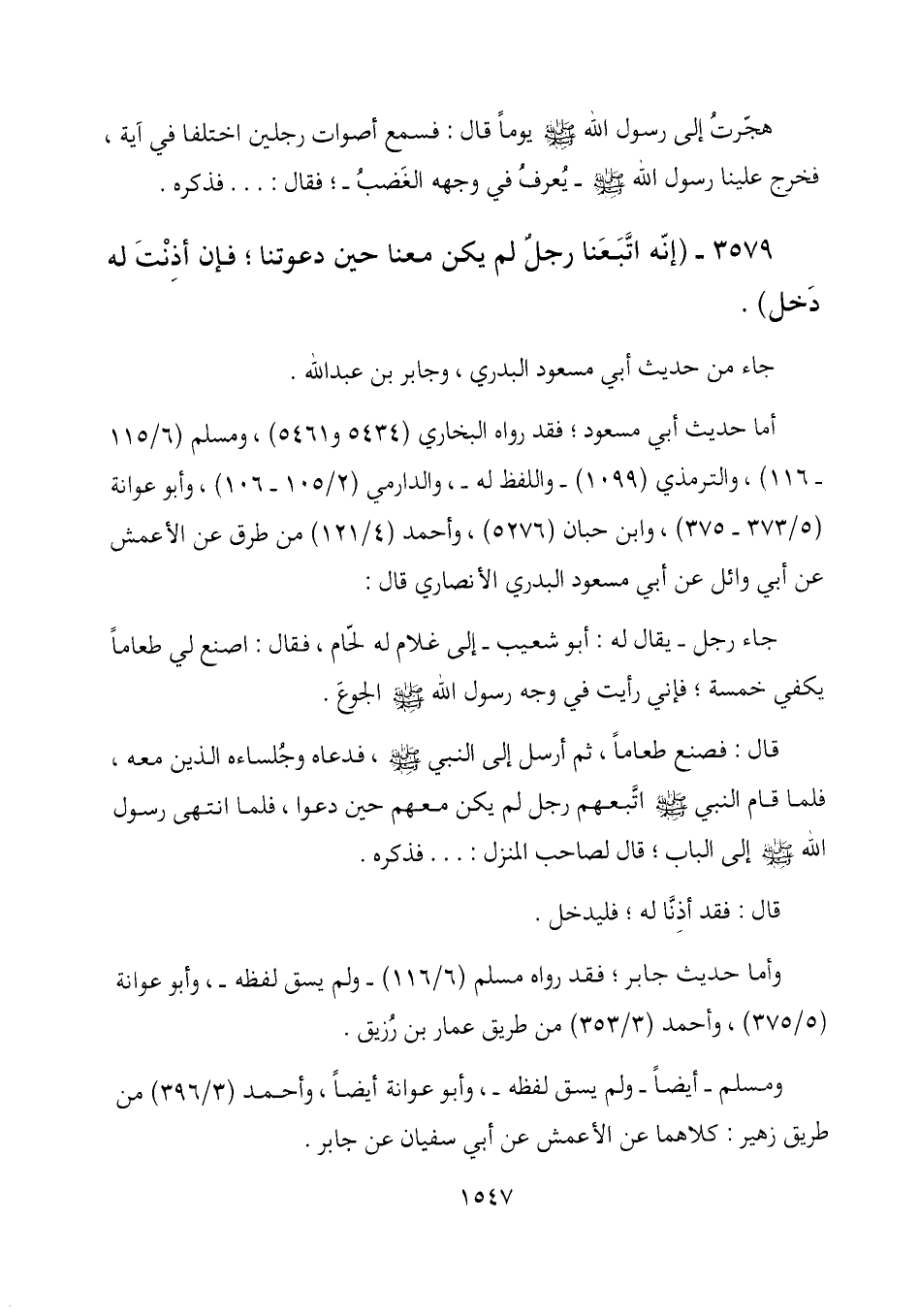 3579- (إنّه اتبعنا رجلٌ لم يكن معنا حين دعوتنا؛ فإن أذنتَ له دخل) .