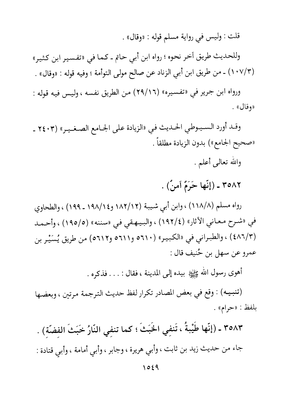 3583- (إنها طَيْبةُ، تَنفِي الخَبَثَ؛ كما تنفِي النارُ خَبَثَ الفِضّةِ) .