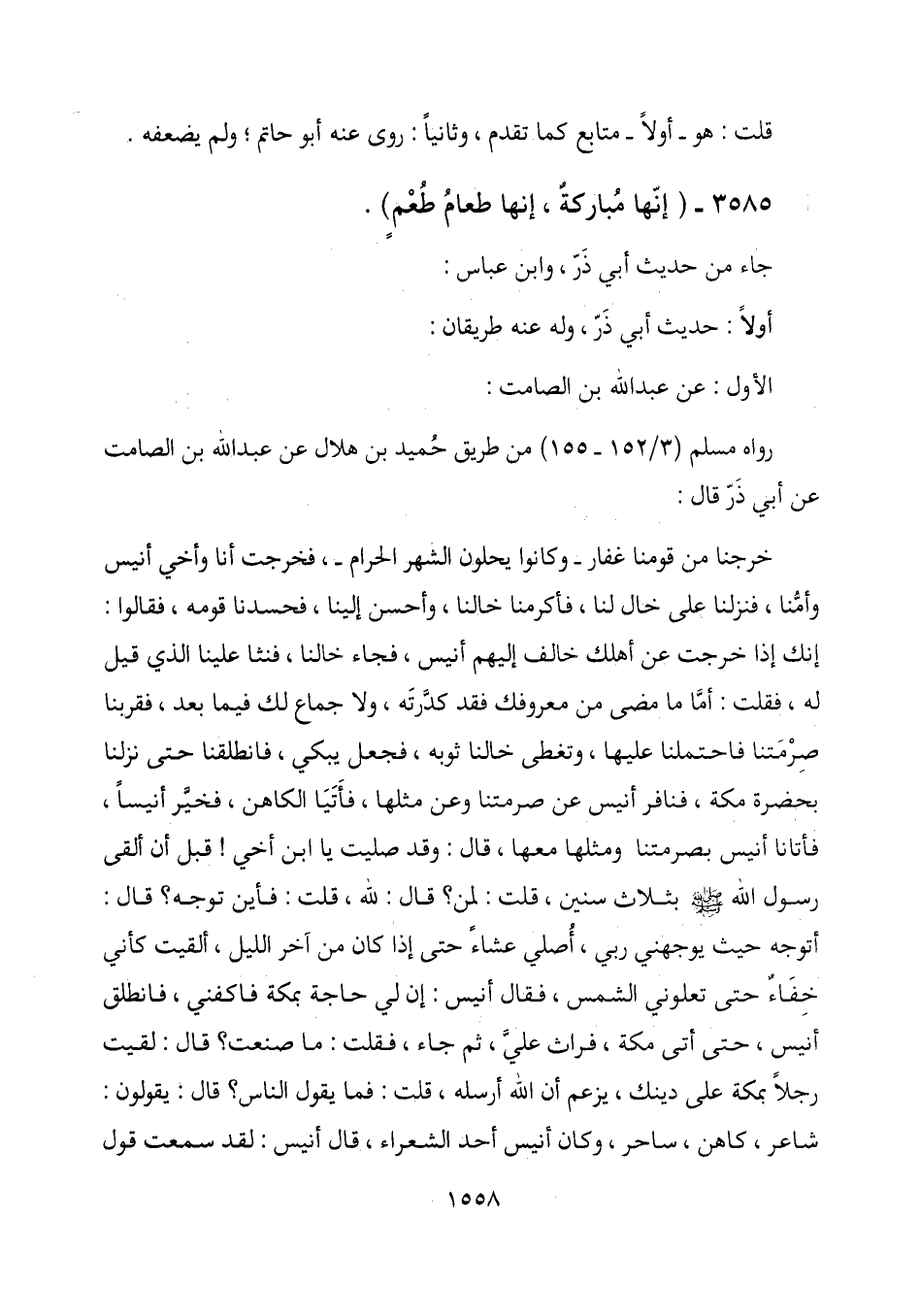 3585- (إنها مباركة، إنها طعامُ طُعْمٍ) .