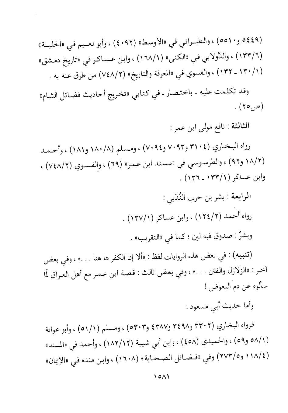 (5449 و5510) ، والطبراني في "الأوسط " (4092) ، وأبو نعيم في "الحلية " (6/133) ، والدولابي في "الكنى" (1/168) ، وابن عساكر في "تاريخ دمشق " (1/ 130- 132) ، والفسوي في "المعرفة والتاريخ " (2/748) من طرق عنه به. وقد تكلمت عليه- باختصار- في كتابي "تخريج أحاديث فضائل الشام " (ص 25) .