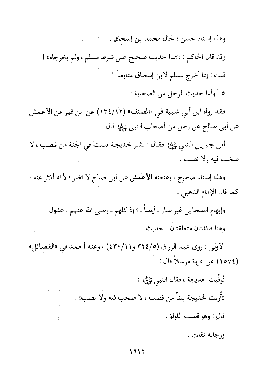"أُريت لخديجة بيتاً من قصب، لا صخب فيه ولا نصب ".