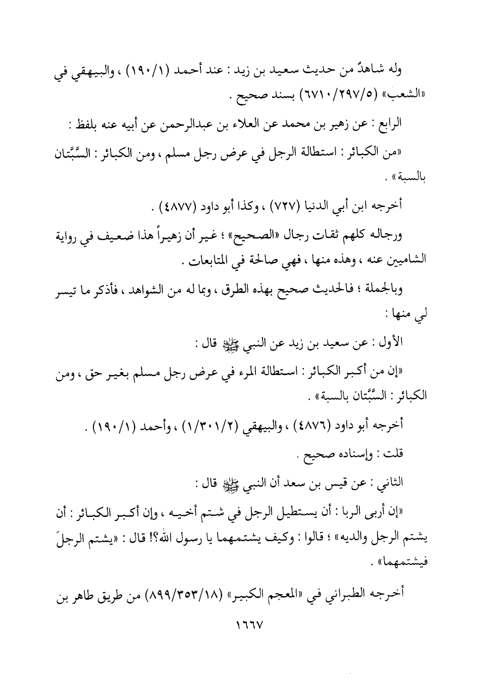 "إن من أكبر الكبائر: استطالة المرء في عرض رجل مسلم بغير حق، ومن الكبائر: السَّبَّتان بالسبة ".