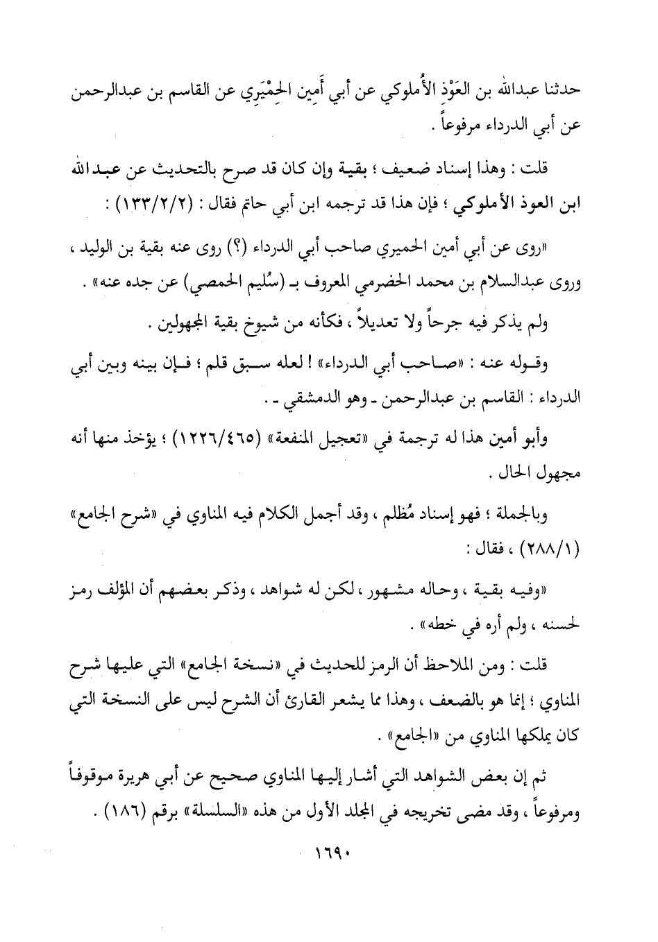 وقوله عنه: "صاحب أبي الدرداء"! لعله سبق قلم؛ فإن بينه وبين أبي الدرداء: القاسم بن عبد الرحمن- وهو الدمشقي-.