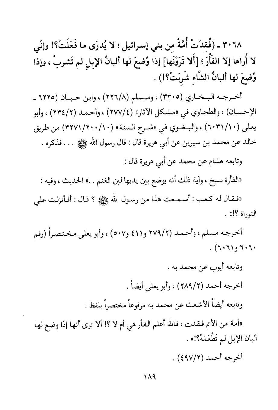 " أمة من الأمم فقدت؛ فالله أعلم الفأر هي أم لا؟ ! ألاترى أنها إذا وضع لها ألبان الإبل لم تَطْعَمْهُ؟ !)) .