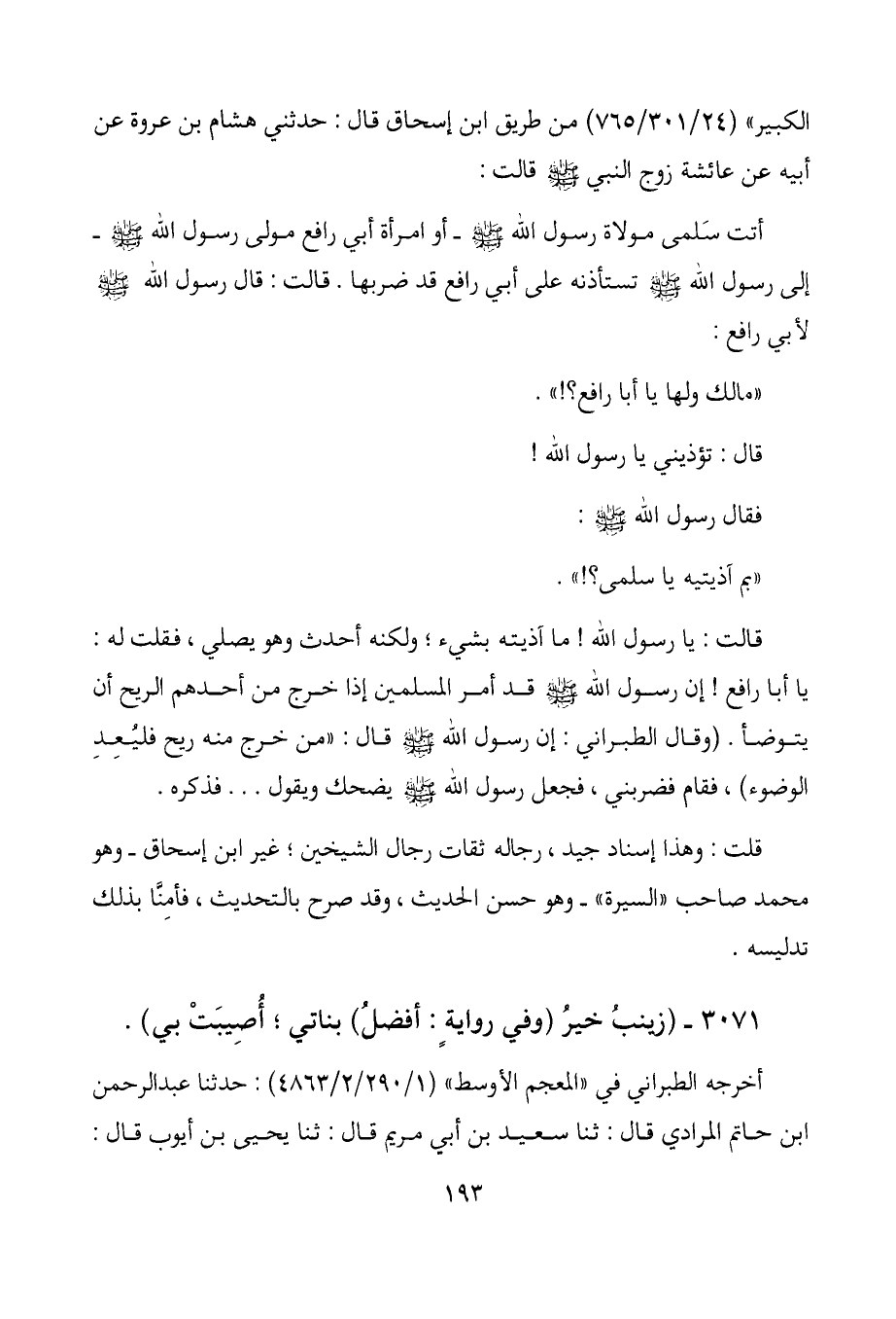 3071- (زينبُ خيرُ (وفي روايةٍ: أفضلُ) بناتي، أُصِيبَتْ بي) .