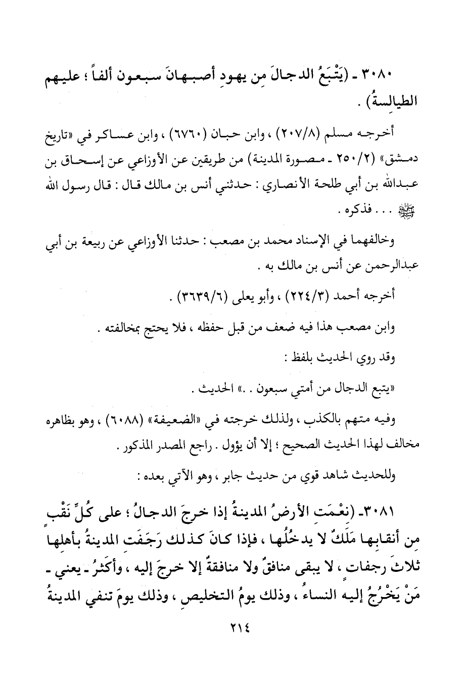 3080- (يَتْبَعُ الدجال من يهودِ أصبهانَ سبعون ألفاً؛ عليهم الطيالِسةُ) .