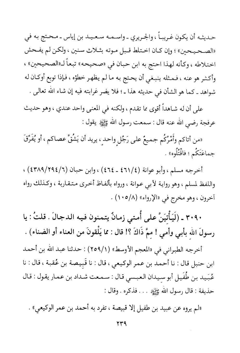 3090- (لَيَأتِيَنَّ على أمتي زمانٌ يتمنون فيه الدجال. قلتُ: يا رسول الله بأبي وأمي! مِمَّ ذَاكَ؟! قال: مما يَلْقونَ من العناء أو الضناء) .