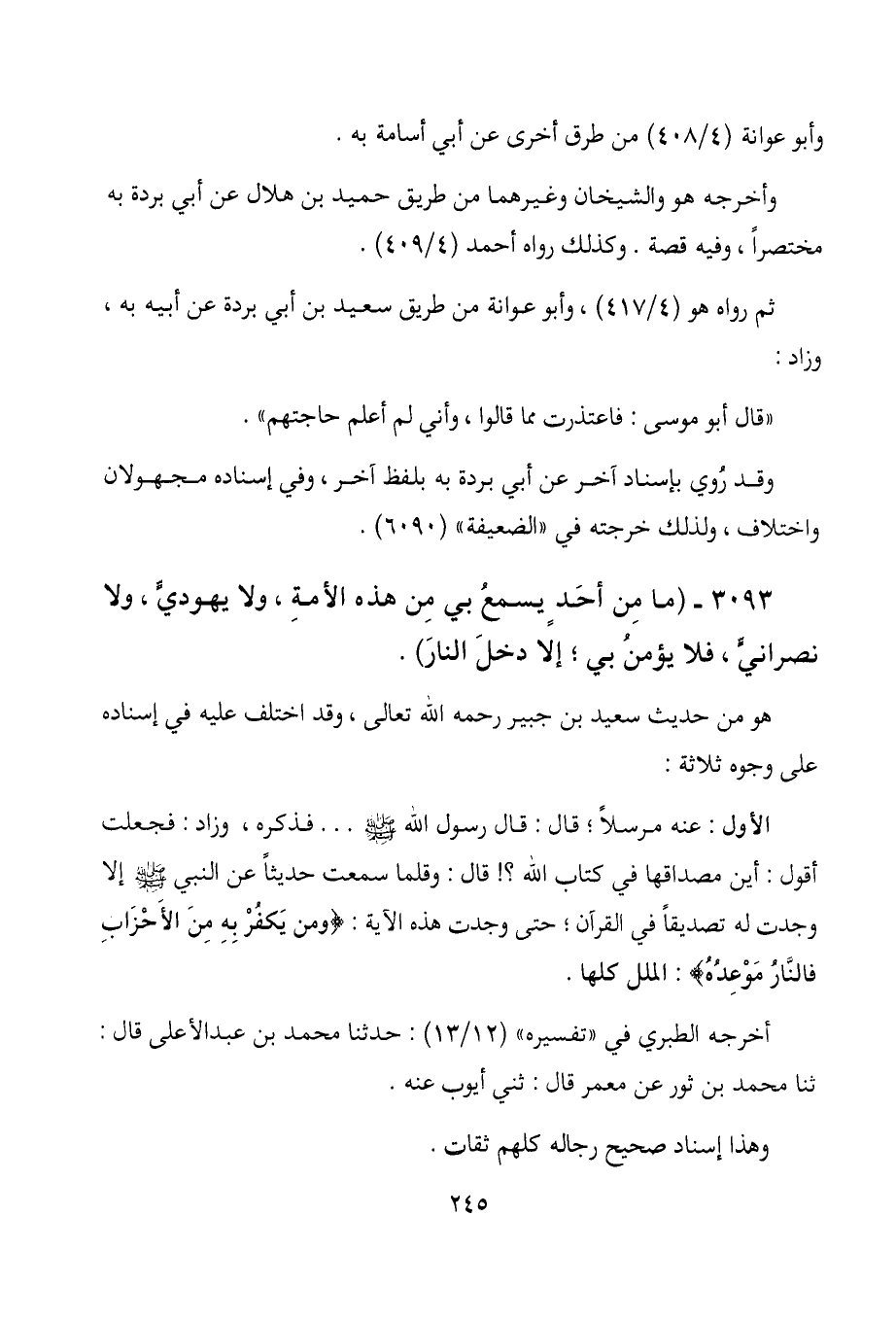 3093- (ما من أحد يسمع بي من هذه الأمة، ولا يهودي، ولا نصراني، فلا يؤمن بي، إلا دخل النار) .