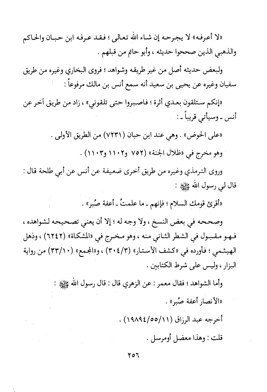ولبعض حديثه أصل من غير طريقه وشواهد؛ فروى البخاري وغيره من طريق سفيان وغيره عن يحيى بن سعيد أنه سمع أنس بن مالك مرفوعاً: