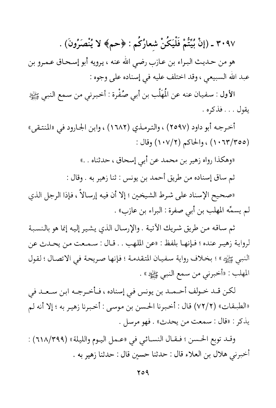 3097- (إنْ بُيِّتُّمْ فَلْيَكُنْ شِعارُكُم: (حم) لا يُنْصَرُونَ) .