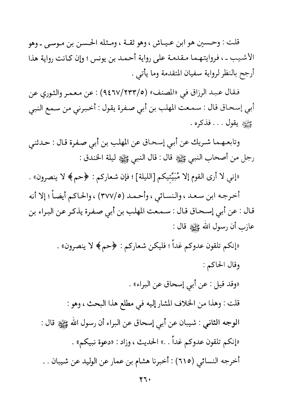 أخرجه ابن سعد، والنسائي، وأحمد (5/377) ، والحاكم أيضاً؛ إلا أنه قال: عن أبي إسحاق قال: سمعت المهلب بن أبى صفرة يذكر عن البراء بن عازب أن رسول الله - صلى الله عليه وسلم - قال: