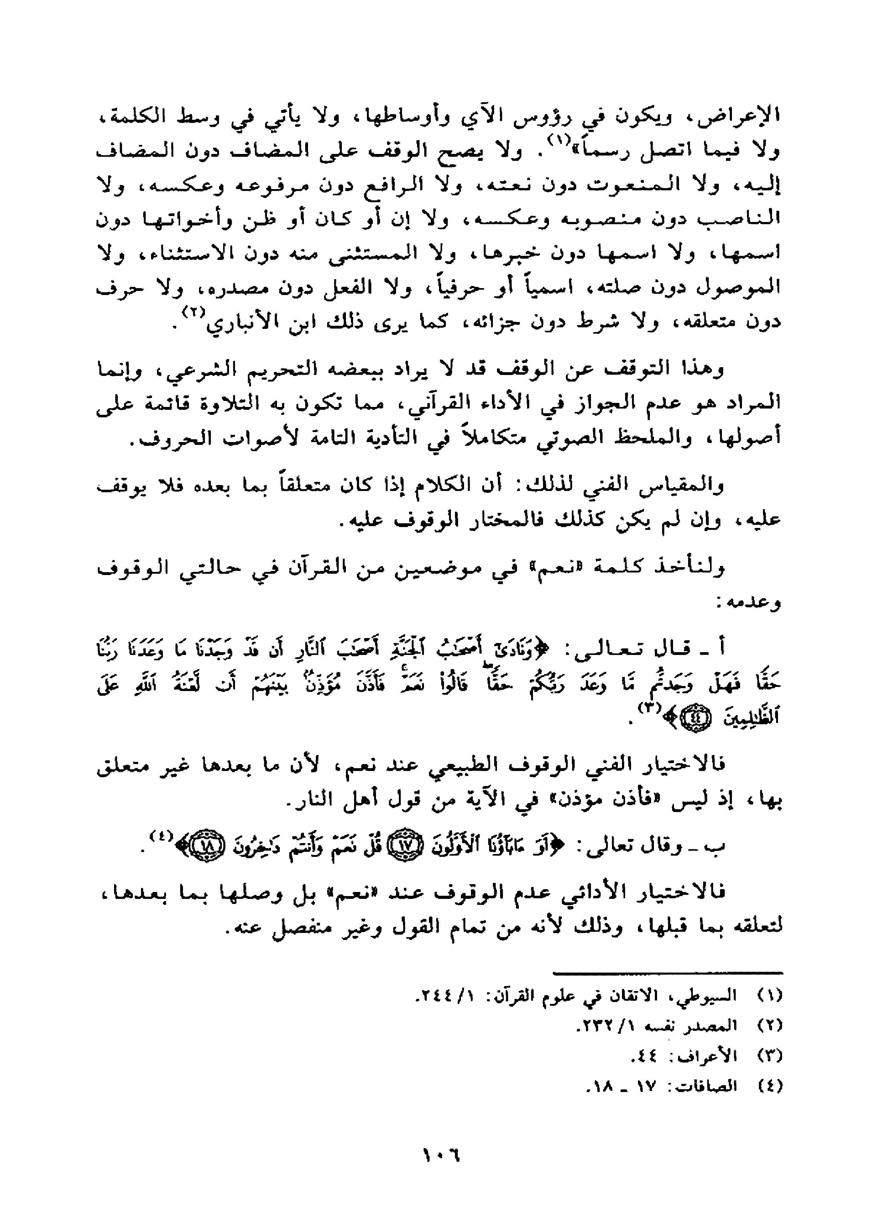 ولنأخذ كلمة «نعم» في موضعين من القرآن في حالتي الوقوف وعدمه: