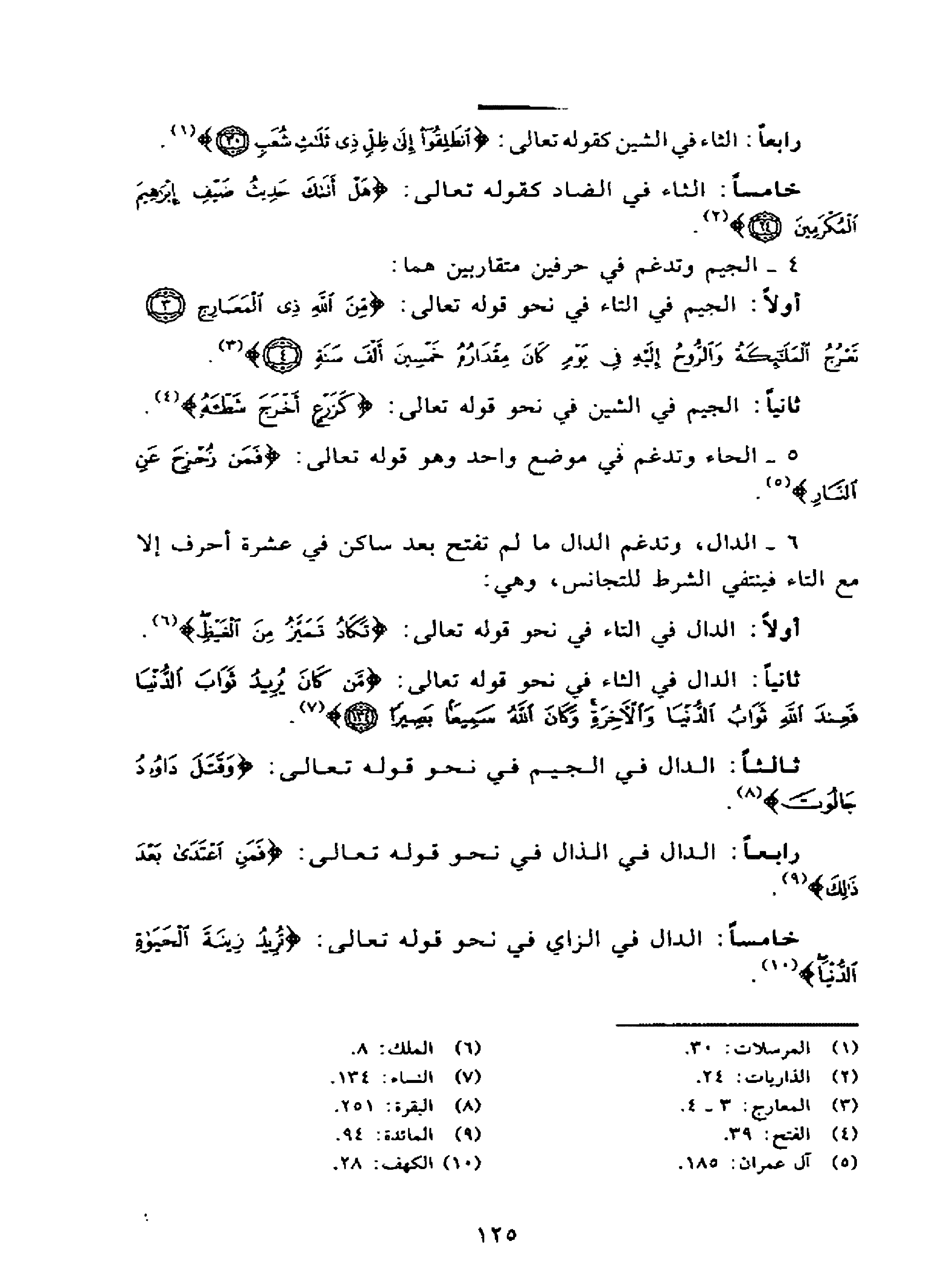 أولاً: الجيم في التاء في نحو قوله تعالى: (من الله ذي المعارج * تعرج الملائكة والروح إليه في يوم كان مقداره خمسين ألف سنة) (3).