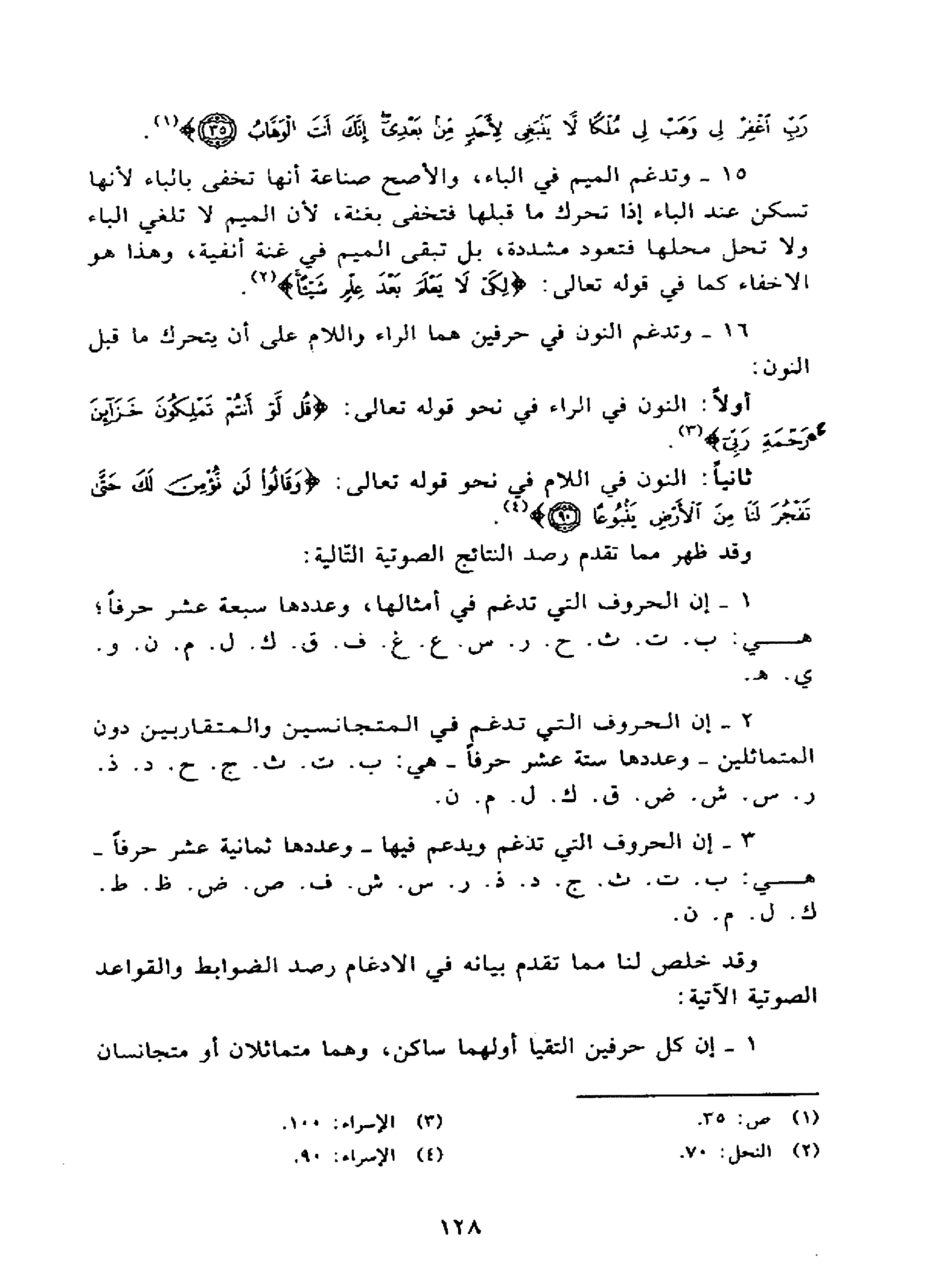1 ـ إن الحروف التي تدغم في أمثالها، وعددها سبعة عشر حرفاً؛ هي: ب. ت. ث. ح. ر. س. ع. غ. ف. ق. ك. ل. م. ن. و. ي. هـ.
