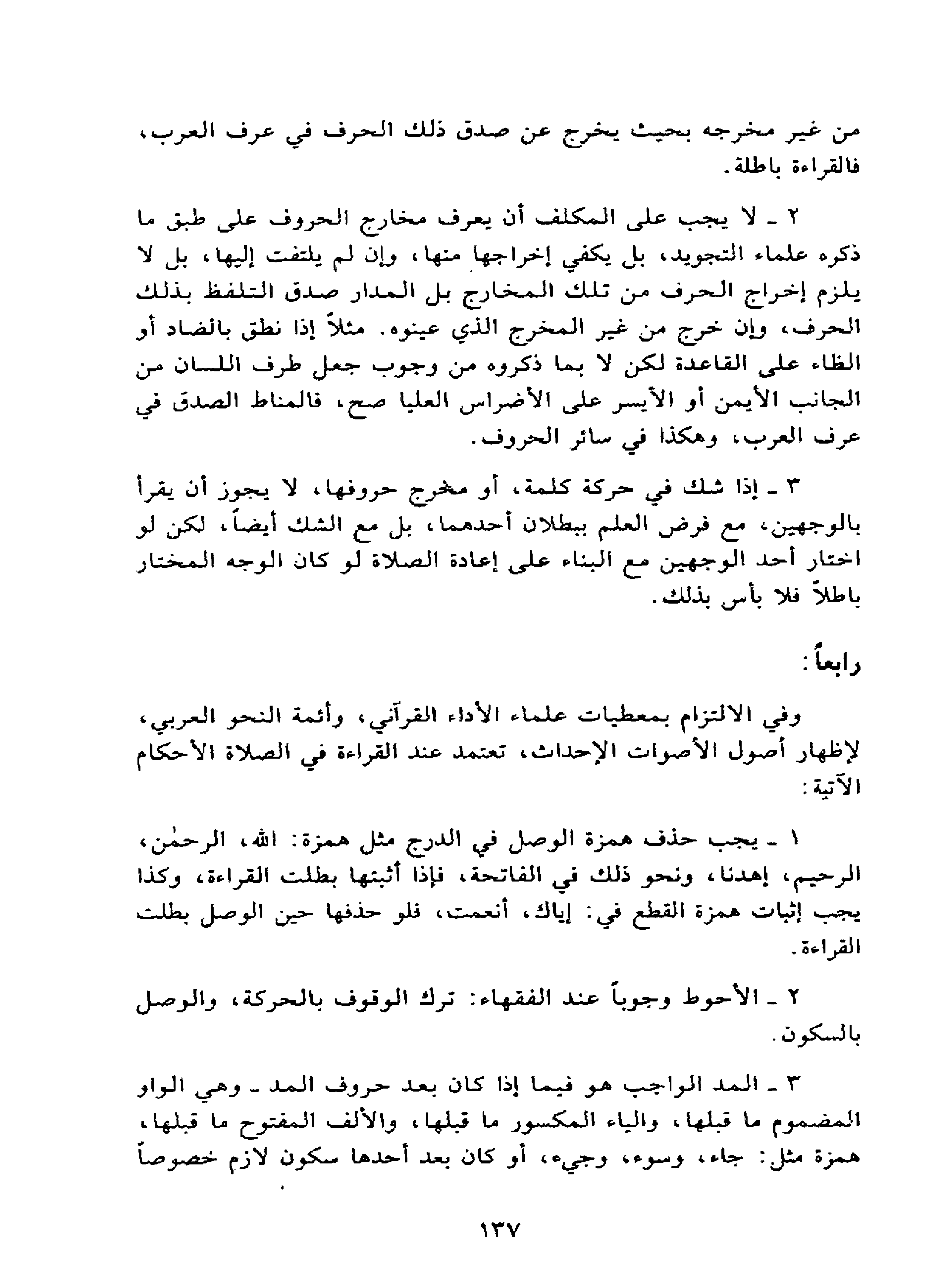 وفي الالتزم بمعطيات علماء الأداء القرآني، وأئمة النحو العربي، لإظهار أصول الأصوات الإحدات، تعتمد عند القراءة في الصلاة الأحكام الآتية: