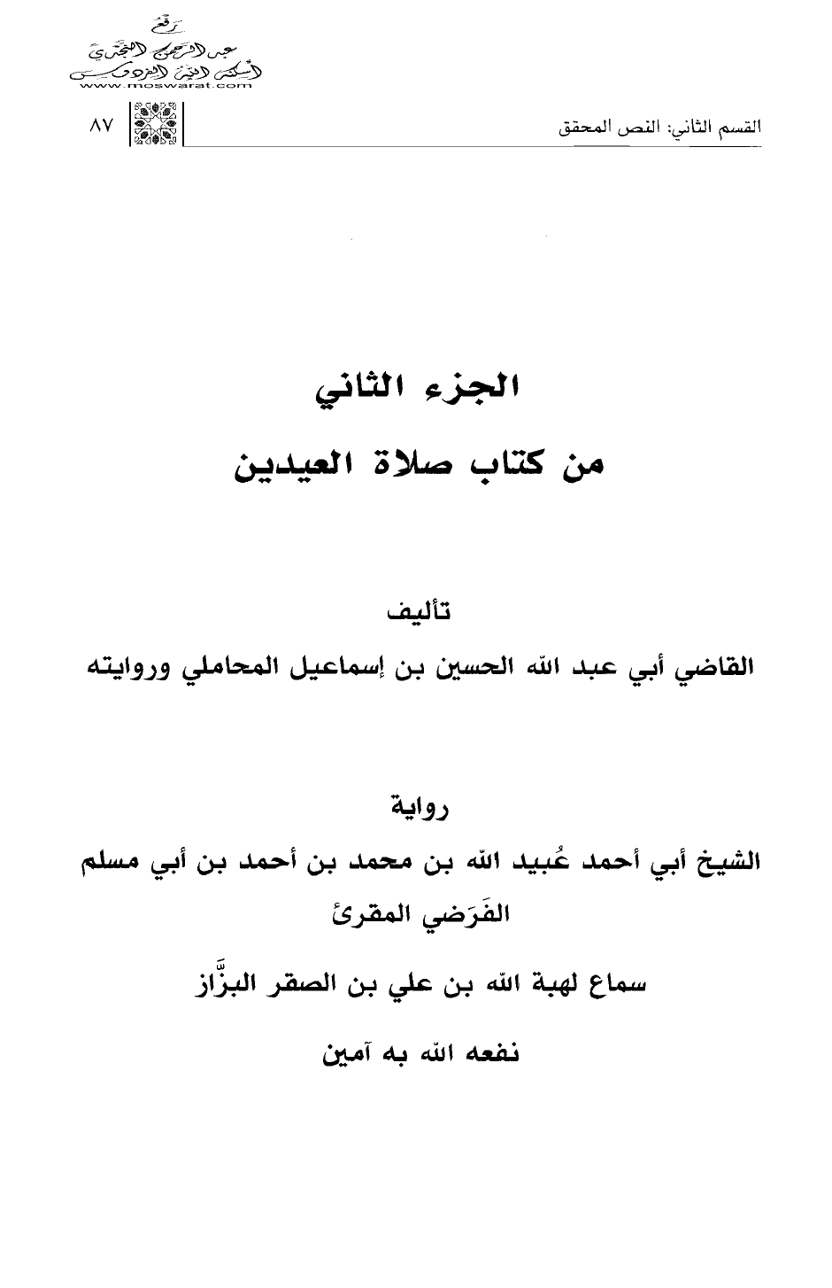 الجزء الثاني من كتاب صلاة العيدين