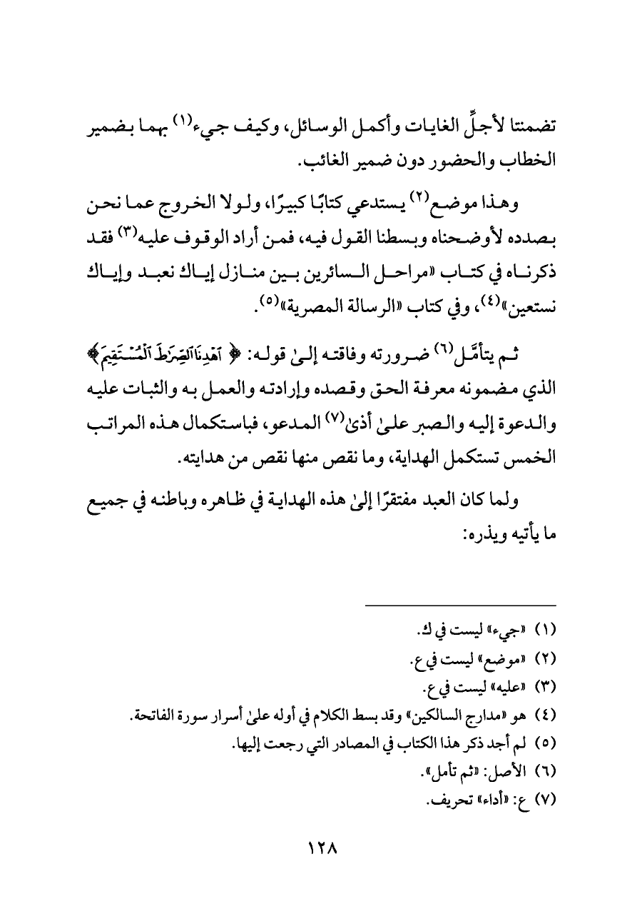 (¬٤) هو "مدارج السالكين" وقد بسط الكلام في أوله على أسرار سورة الفاتحة.