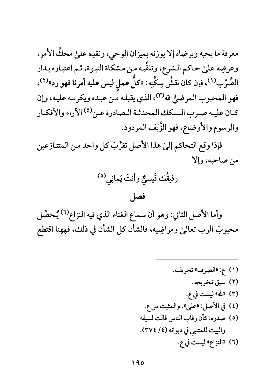 وأما الأصل الثاني: وهو أن سماع الغناء الذي فيه النزاع (¬٦) يُحصِّل محبوبَ الرب تعالى ومراضِيه، فالشأن كل الشأن في ذلك، فههنا اقتطع