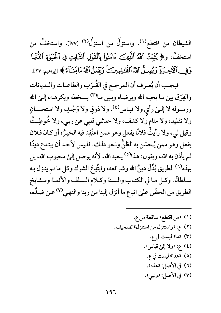 الشيطان من اقتطع (¬١)، واستزلَّ من استزلَّ (¬٢) [٧٧ أ]، واستخفَّ من استخفَّ، و {يُثَبِّتُ اللَّهُ الَّذِينَ آمَنُوا بِالْقَوْلِ الثَّابِتِ فِي الْحَيَاةِ الدُّنْيَا وَفِي الْآخِرَةِ وَيُضِلُّ اللَّهُ الظَّالِمِينَ وَيَفْعَلُ اللَّهُ مَا يَشَاءُ} [إبراهيم: ٢٧].