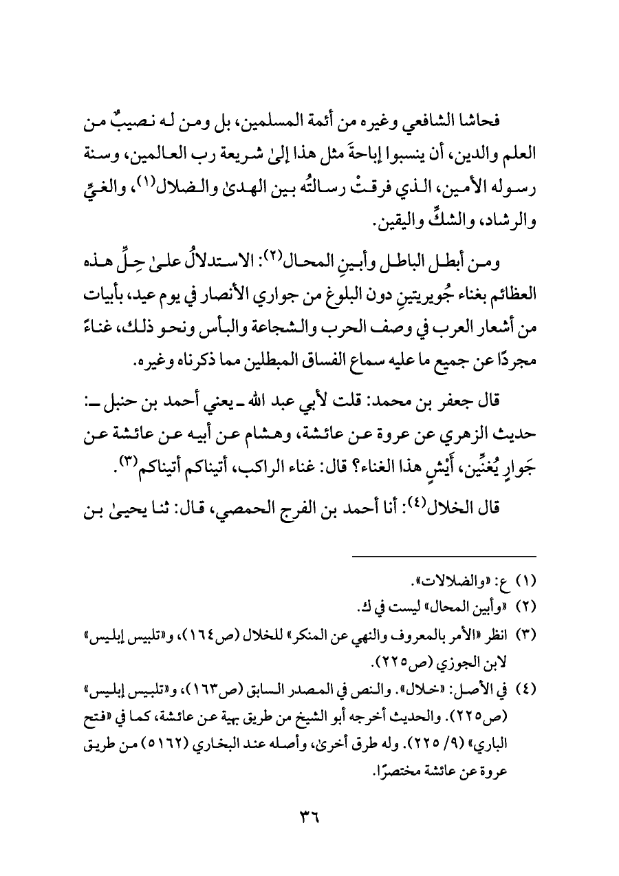 (¬٣) انظر "الأمر بالمعروف والنهي عن المنكر" للخلال (ص ١٦٤)، و"تلبيس إبليس" لابن الجوزي (ص ٢٢٥).