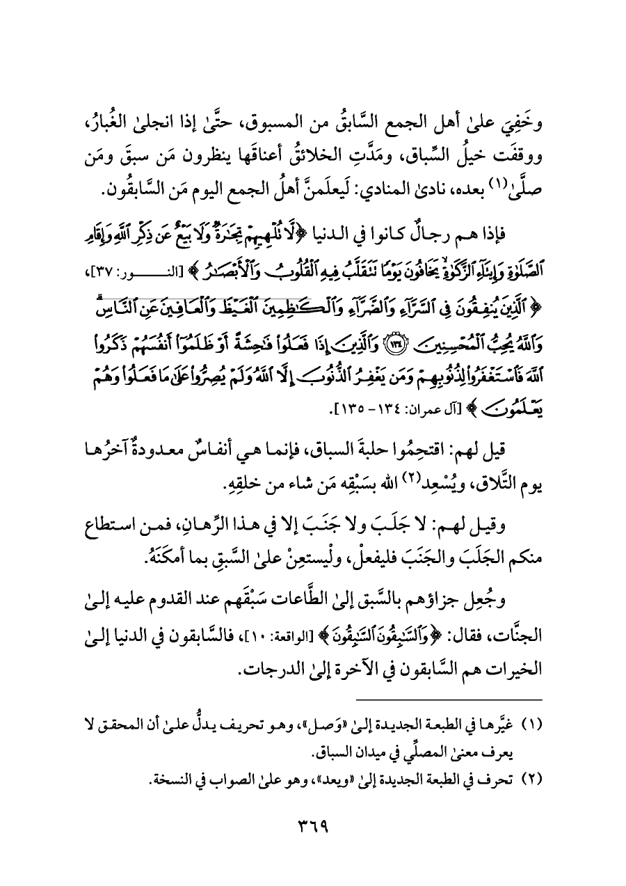 (¬١) غيَّرها في الطبعة الجديدة إلى "وَصل"، وهو تحريف يدلُّ على أن المحقق لا يعرف معنى المصلِّي في ميدان السباق.