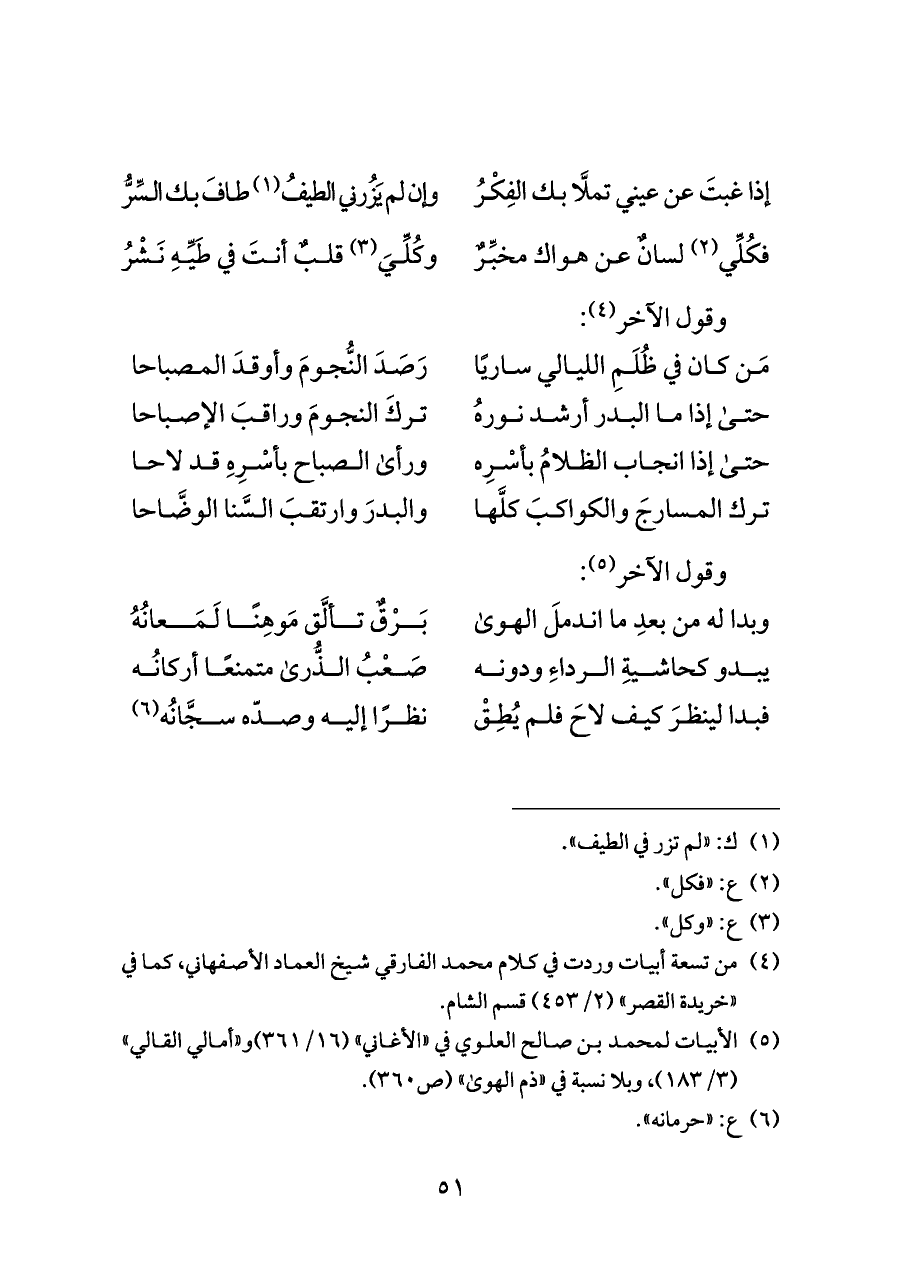 (¬٥) الأبيات لمحمد بن صالح العلوي في "الأغاني" (١٦/ ٣٦١) و"أمالي القالي" (٣/ ١٨٣)، وبلا نسبة في "ذم الهوى" (ص ٣٦٠).