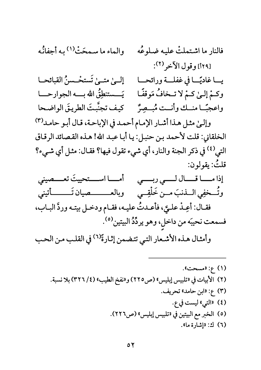 (¬٥) الخبر مع البيتين في "تلبيس إبليس" (ص ٢٢٦).
