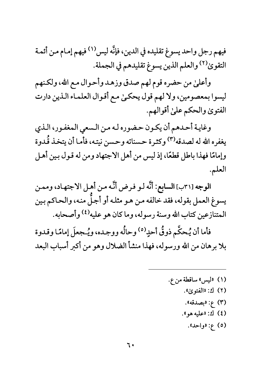 فيهم رجل واحد يسوغ تقليده في الدين، فإنَّه ليس (¬١) فيهم إمام من أئمة التقوى (¬٢) والعلم الذين يسوغ تقليدهم في الجملة.