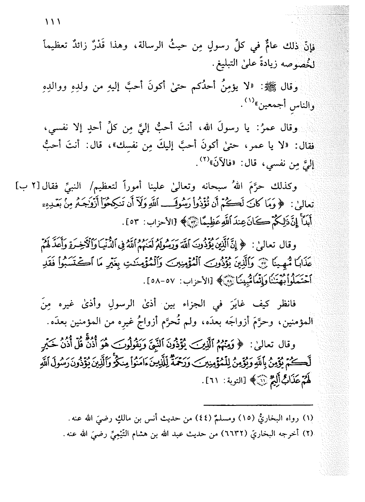 وقال صلى الله عليه وسلم: "لا يؤمن أحدكم حتى أكون أحب إليه من ولده ووالده والناس أجمعين".