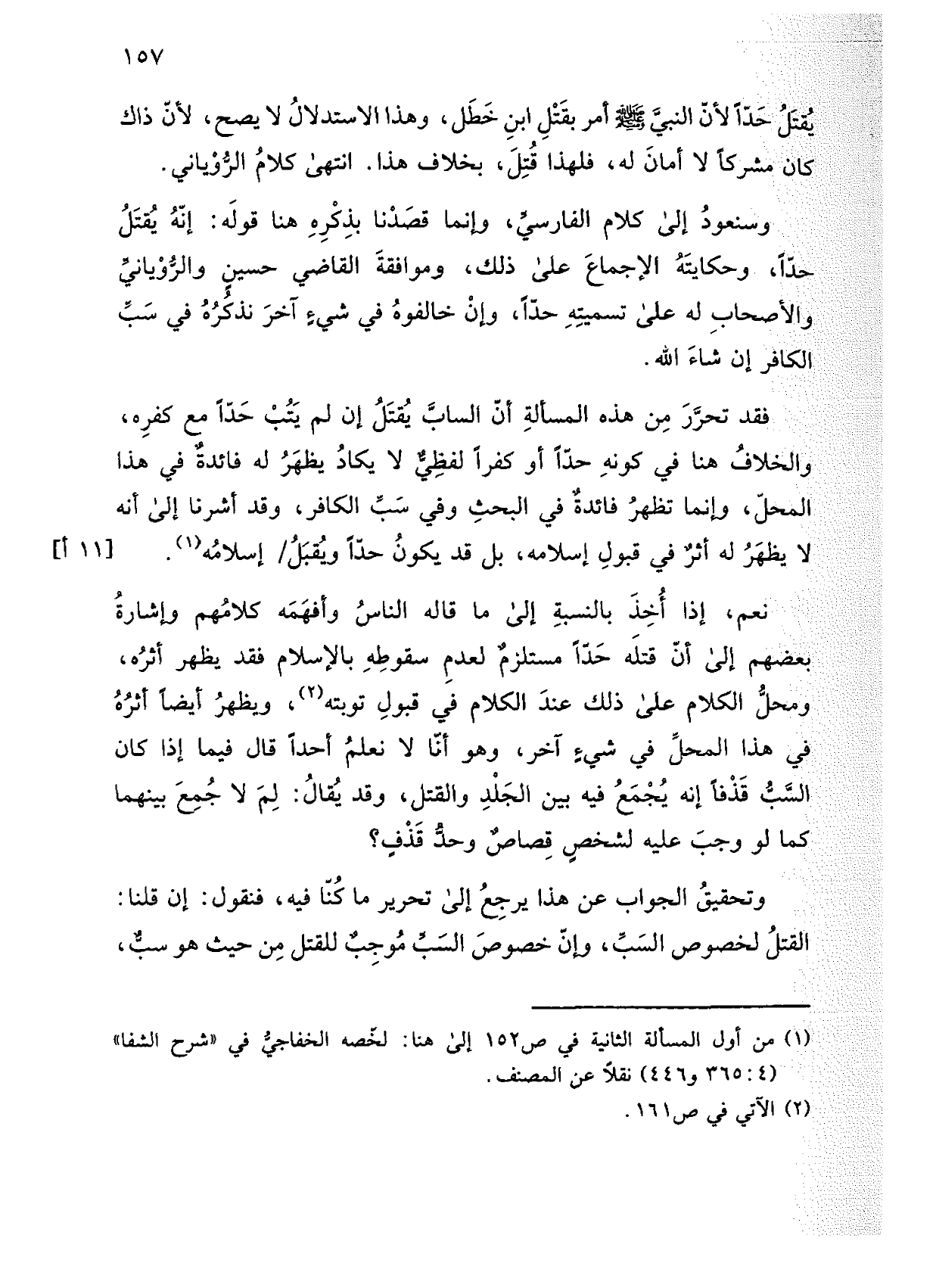 وسنعود إلى كلام الفارسي، وإنما قصدنا بذكره هنا قوله: إنه يقتل حدًا، وحكايته الإجماع على ذلك، وموافقة القاضي حسين والروياني والأصحاب له على تسميته حدًا، وإن خالفوه في شيء آخر نذكره في سب الكافر إن شاء الله.