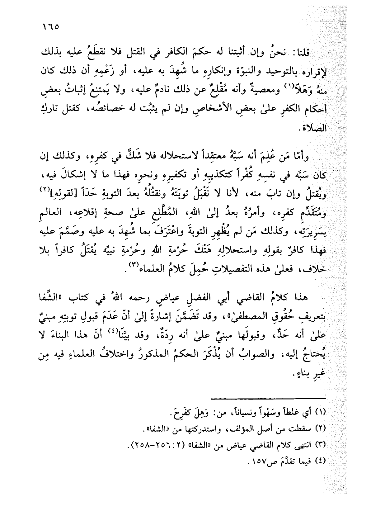 هذا كلام القاضي أبي الفضل عياض رحمه الله في كتاب "الشفا بتعريف حقوق المصطفى"، وقد تضمن إشارة إلى أن عدم قبول توبته مبني على أنه حد، وقبولها مبني على أنه ردة، وقد بينا أن هذا البناء لا يحتاج إليه، والصواب أن يذكر الحكم المذكور واختلاف العلماء فيه من غير بناء.