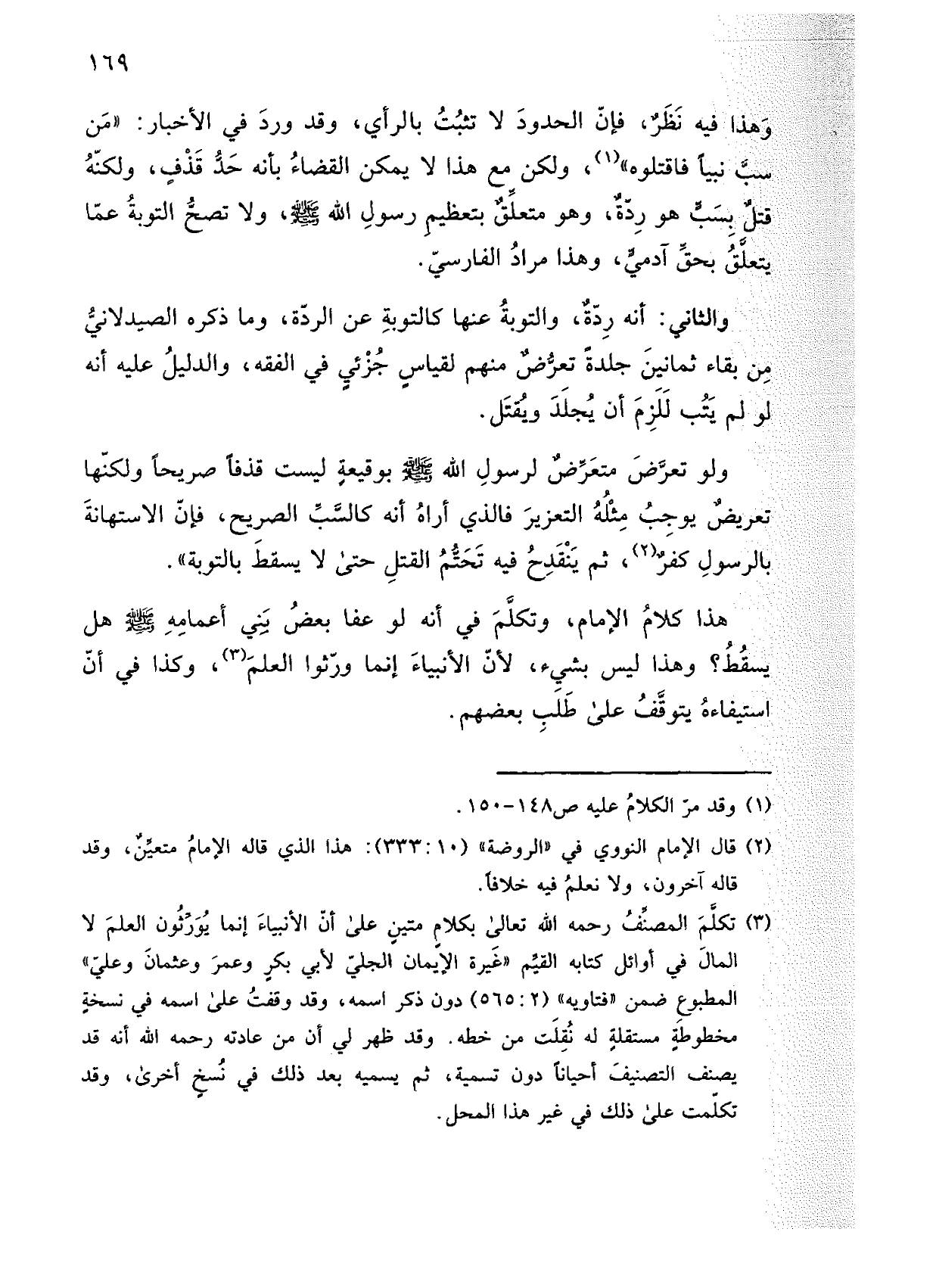 هذا كلام الإمام، وتكلم في أنه لو عفا بعض بني أعمامه صلى الله عليه وسلم هل يسقط؟ وهذا ليس بشيء، لأن الأنبياء إنما ورثوا العلم، وكذا في أن استيفاء بتوقف على طلب بعضهم.