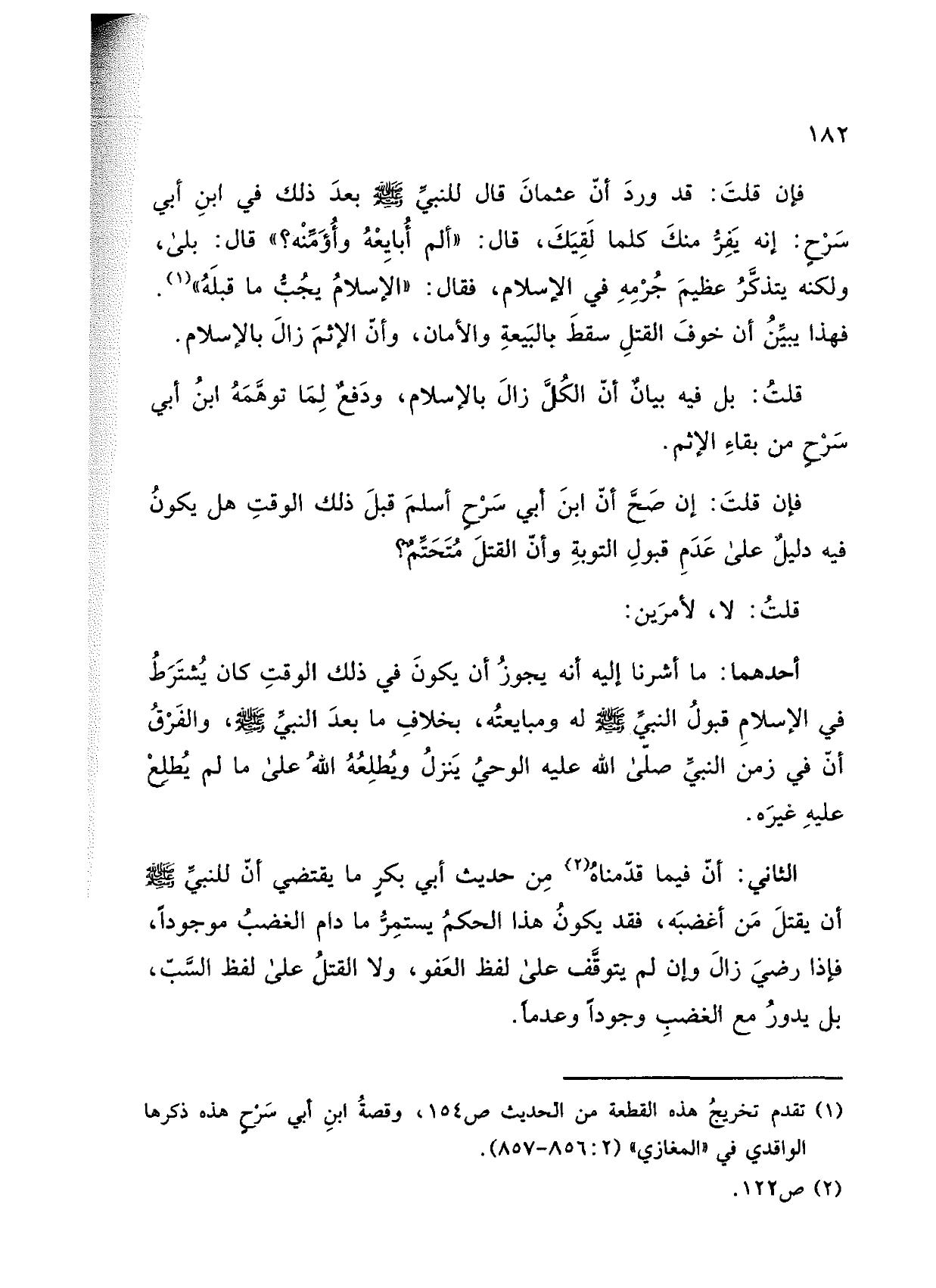 فإن قلت: إن صح أن ابن أبي سرح أسلم قبل ذلك الوقت هل يكون فيه دليل على عدم قبول التوبة وأن القتل متحتم؟