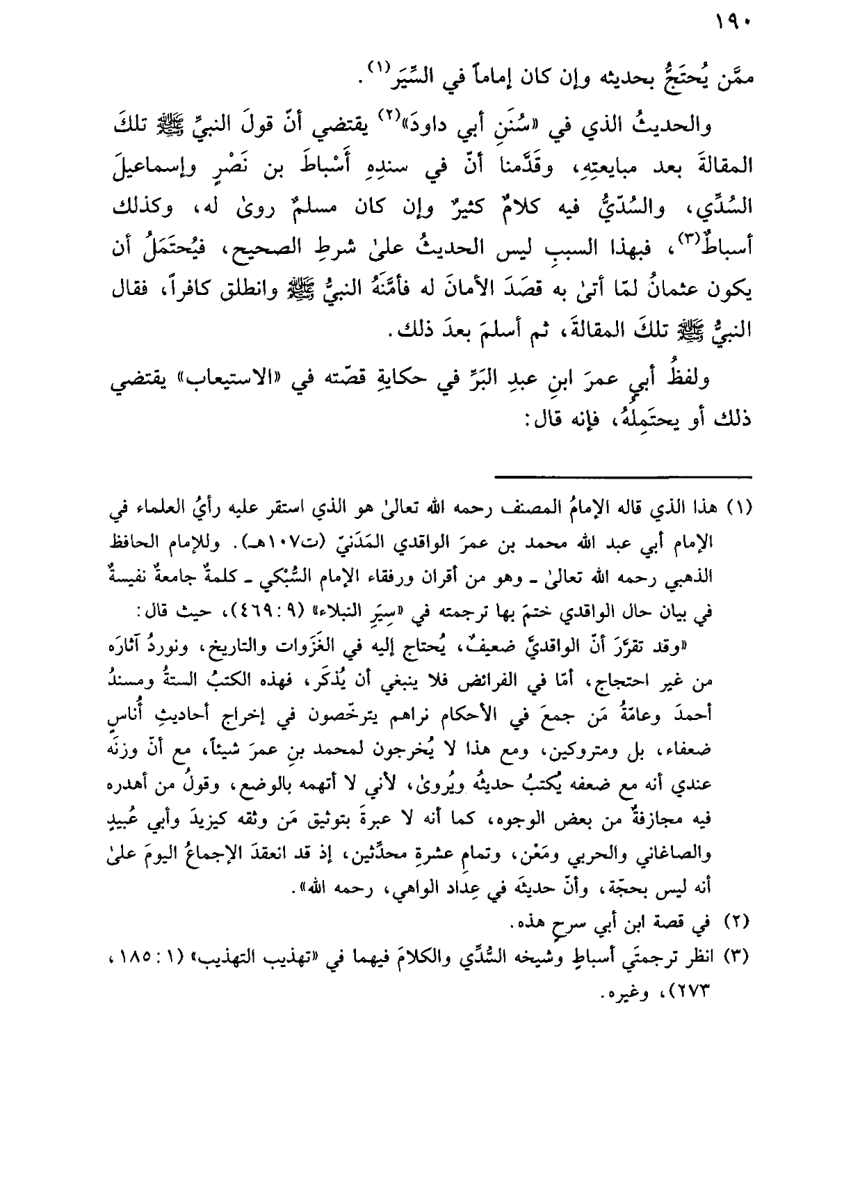 ممن يحتج بحديثه وإن كان إمامًا في السير.