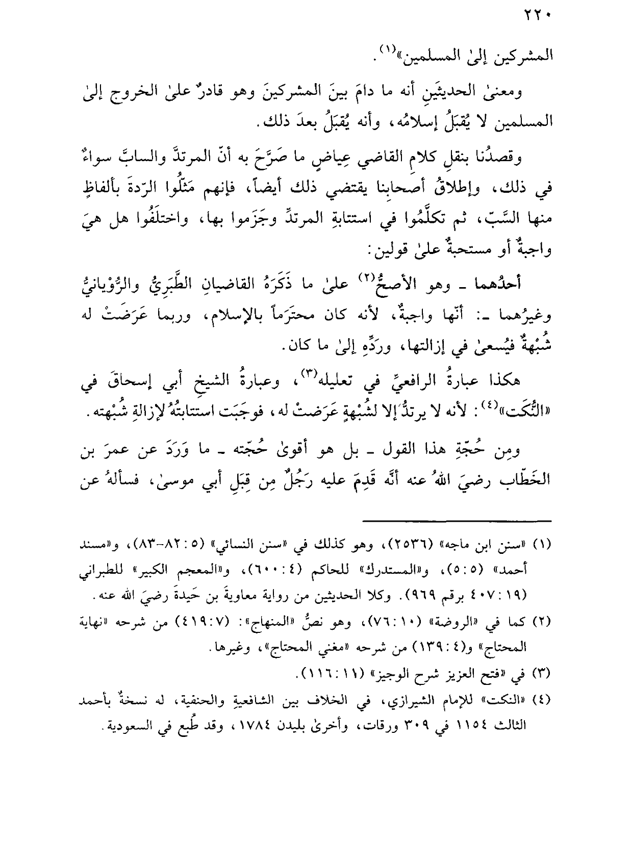 هكذا عبارة الرافعي في تعليله، وعبارة الشيخ أبي إسحاق في «النكت»: لأنه لا يرتد إلا لشبهة عرضت له، فوجبت استتابته لإزالة شبهته.