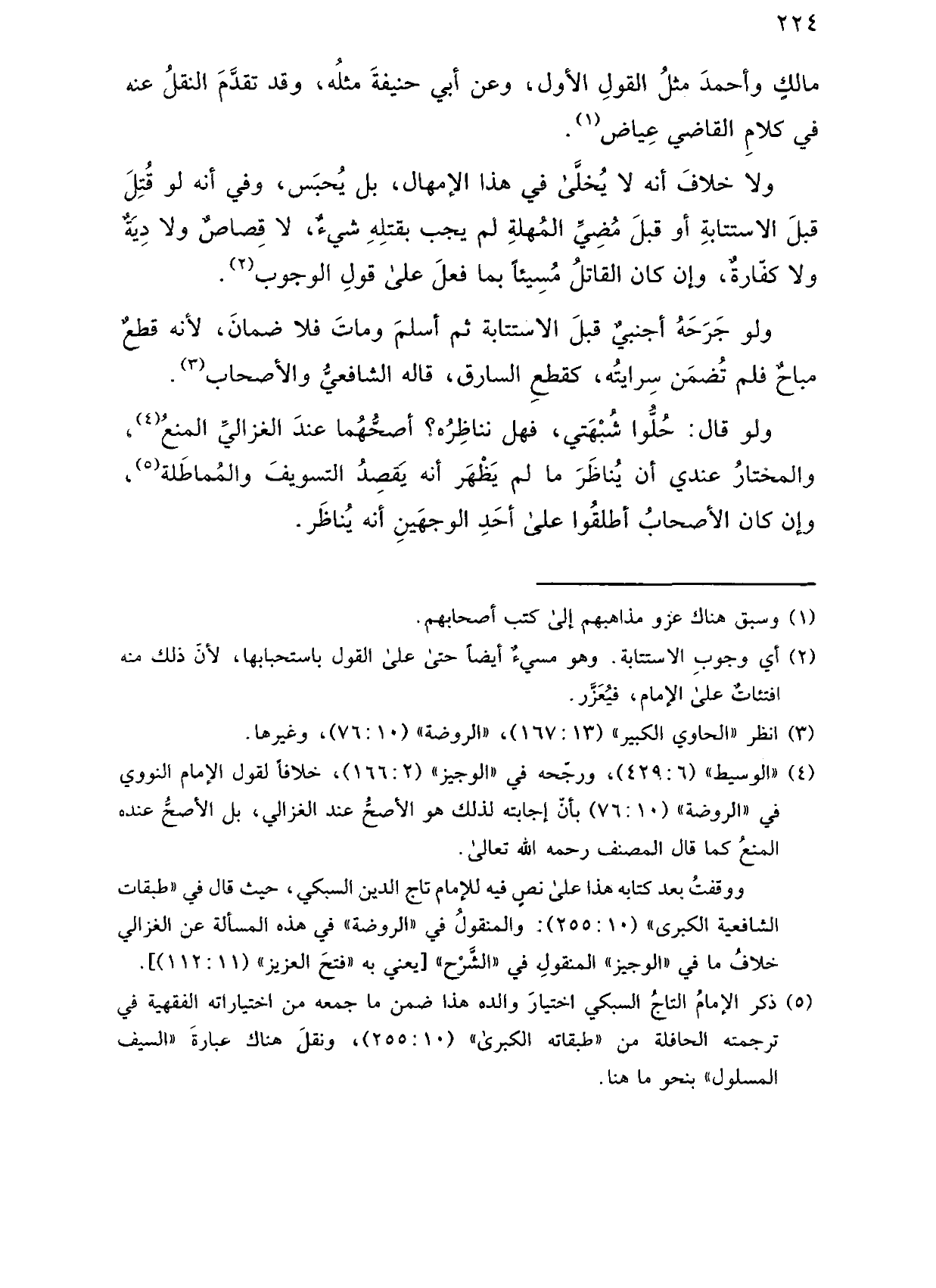 ولا خلاف أنه لا يخلى في هذا الإمهال، بل يحبس، وفي أنه لو قتل قبل الاستتابة أو قبل مضي المهلة لم يجب بقتله شيء، لا قصاص ولا دية ولا كفارة، وإن كان القاتل مسيئًا بما فعل على قول الوجوب.