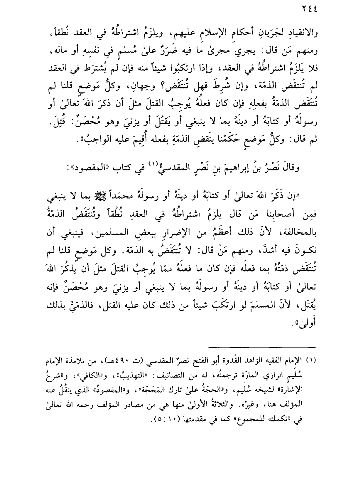 وقال نصر بن إبراهيم بن نصر المقدسي في كتاب "المقصود":