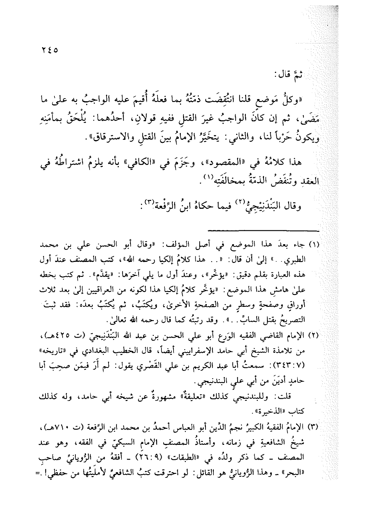 وقال البندنيجي فيما حكاه ابن الرفعة.