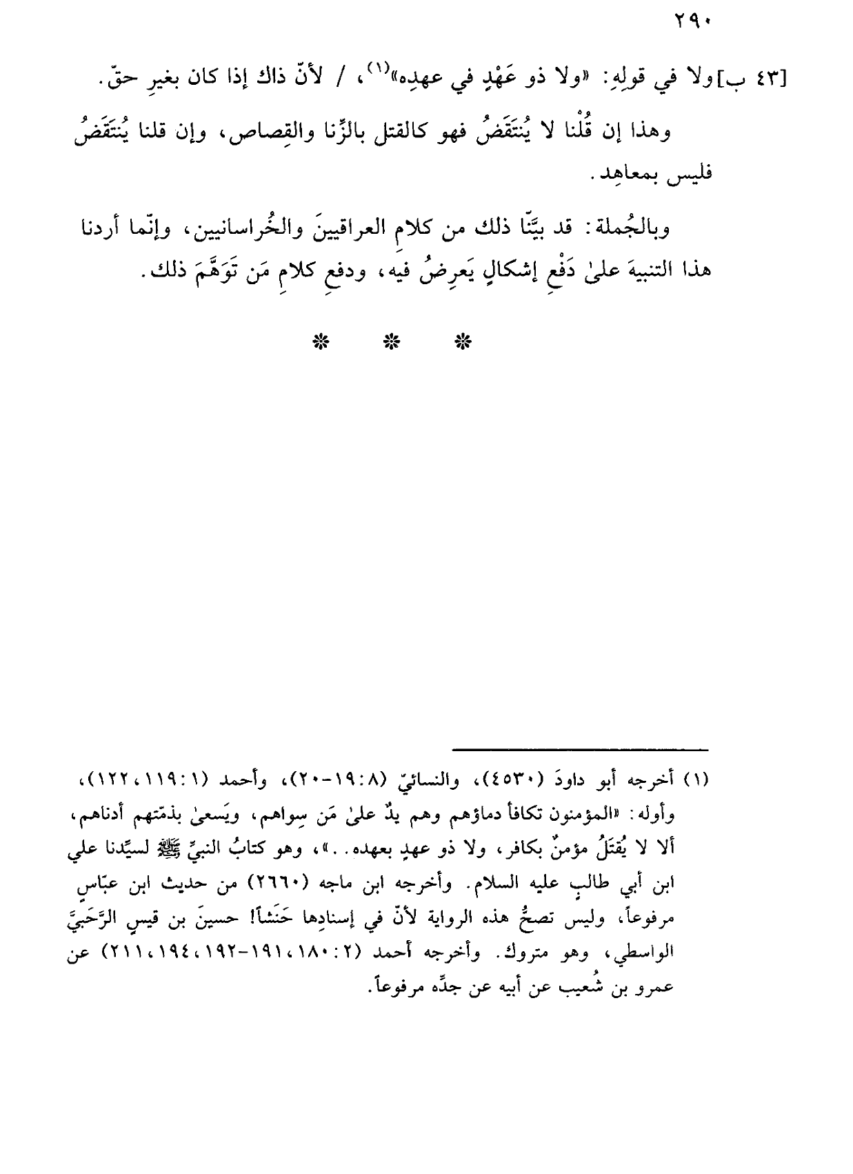 ولا في قوله: "ولا ذو عهد في عهده"،/ لأن ذاك إذا كان بغير حق.