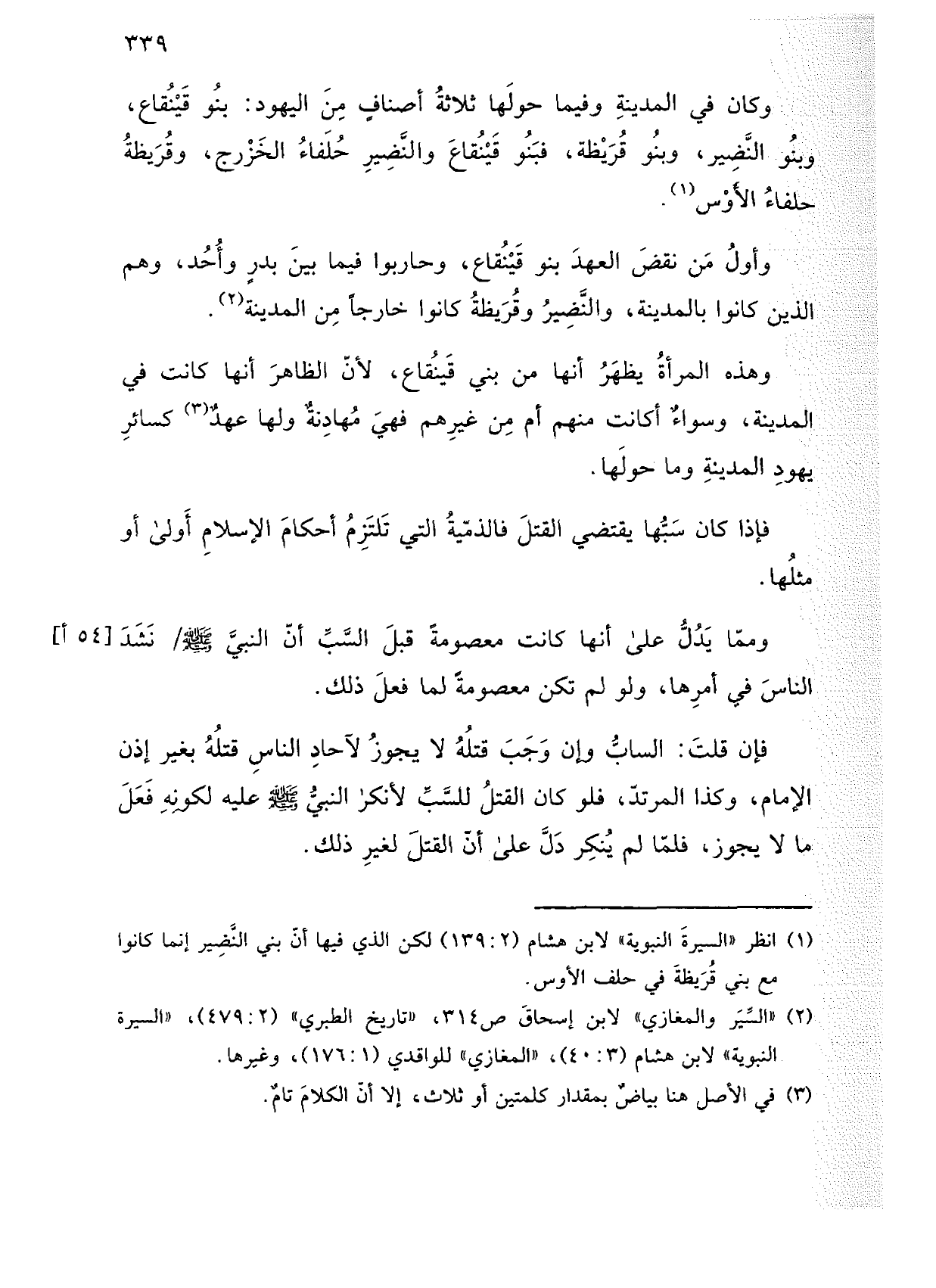 وأول من نقض العهد بنو قينقاع، وحاربوا فيما بين بدر وأحد، وهم الذين كانوا بالمدينة، والنضير وقريظة كانوا خارجًا من المدينة.