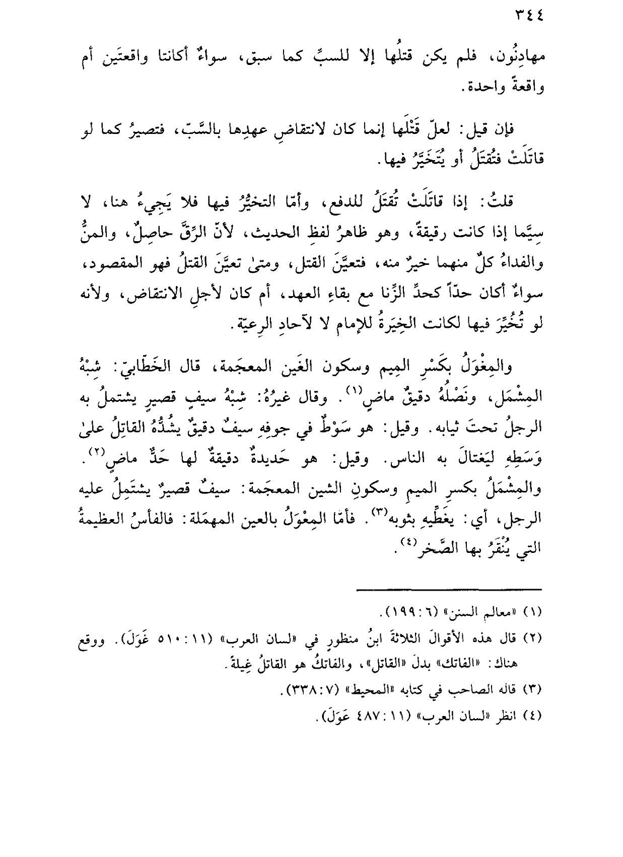 والمغول بكسر الميم وسكون الغين المعجمة، قال الخطابي: شبه المشمل، ونصله دقيق ماض. وقال غيره: شبه سيف قصير يشتمل به الرجل تحت ثيابه. وقيل: هو سوط في جوفه سيف دقيق يشده القاتل على وسطه ليغتال به الناس. وقيل: هو حديدة دقيقة لها حد ماض. والمشمل بكسر الميم وسكون الشين المعجمة: سيف قصير يشتمل عليه الرجل، أي يغطيه بثوبه. فأما المِعْوَلُ بالعين المهملة: فالفأس العظيمة التي ينقر بها الصخر.