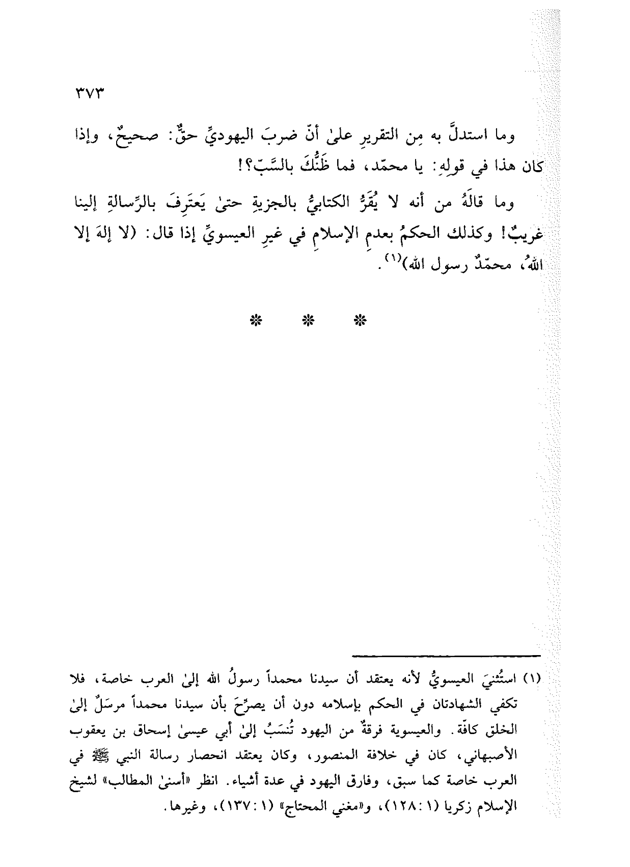 وما قاله من أنه لا يقر الكتابي بالجزية حتى يعترف بالرسالة إلينا غريب! وكذلك الحكم بعدم الإسلام في غير العيسوي إذا قال: (لا إله إلا الله، محمد رسول الله).