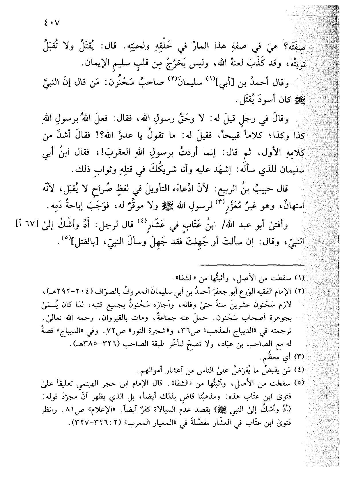 وقال أحمد بن [أبي] سليمان صاحب سحنون: من قال إن النبي صلى الله عليه وسلم كان أسود يقتل.