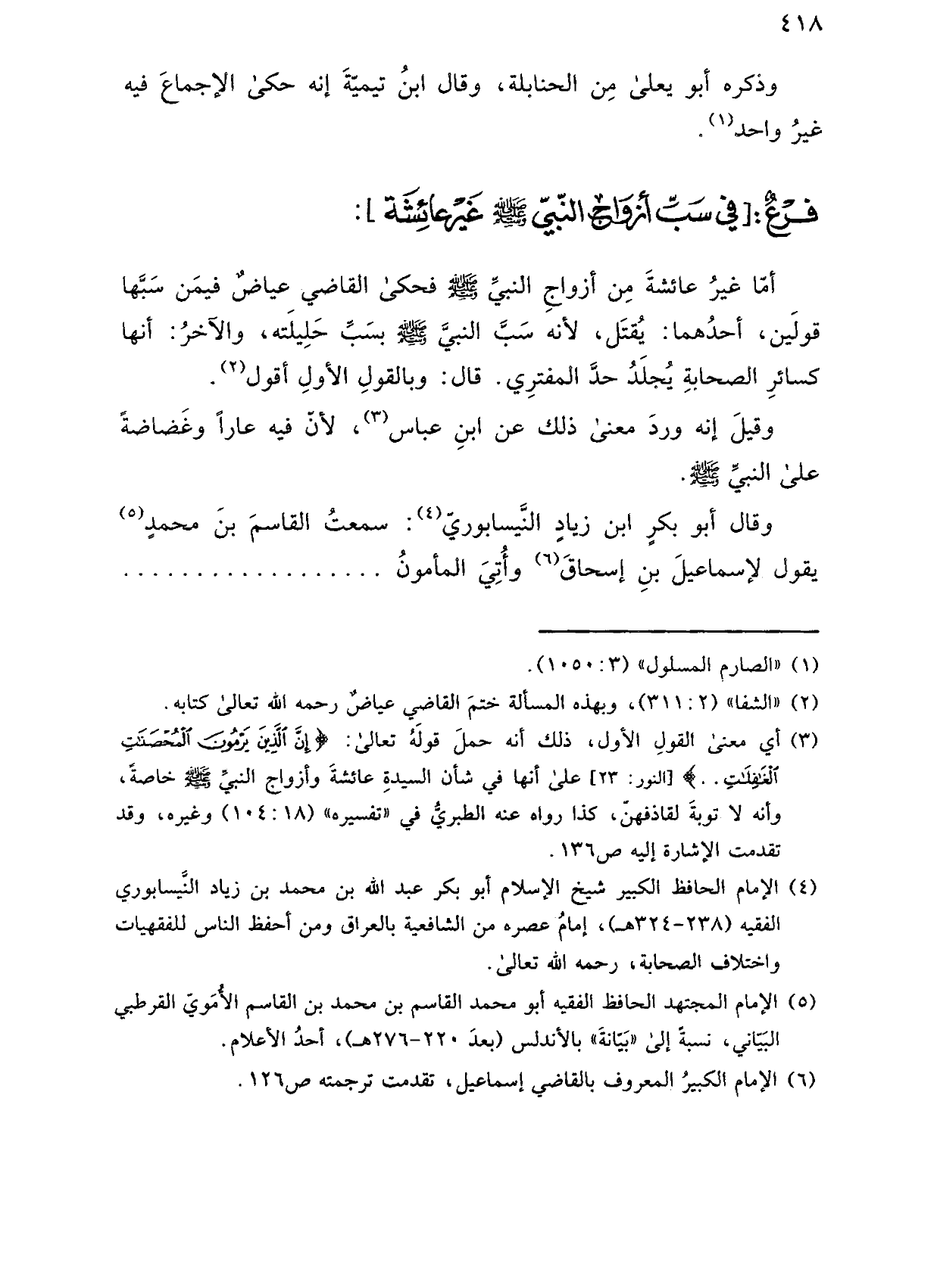 فرع: [في سب أزواج النبي صلى الله عليه وسلم غير عائشة]: