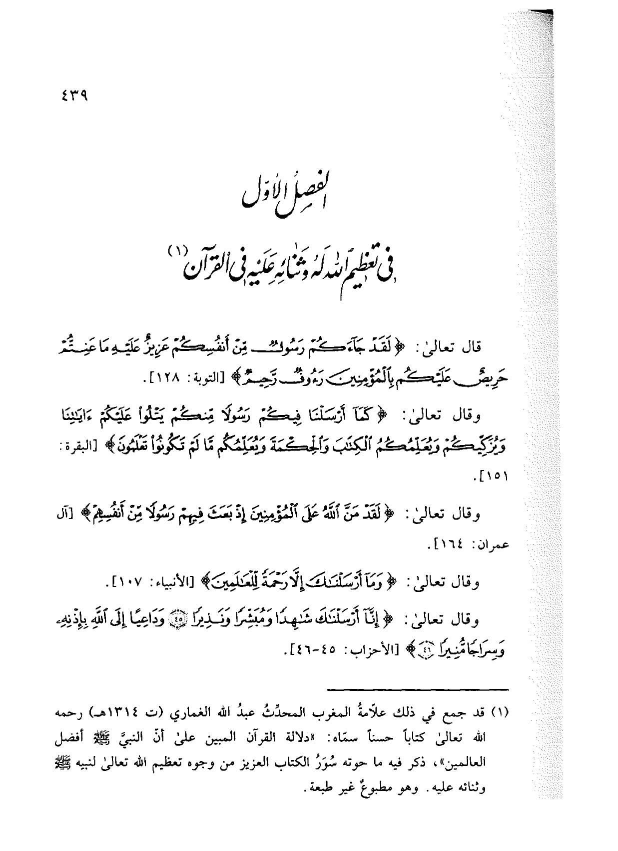 الفصل الأول: في تعظيم الله له وثنائه عليه في القرآن