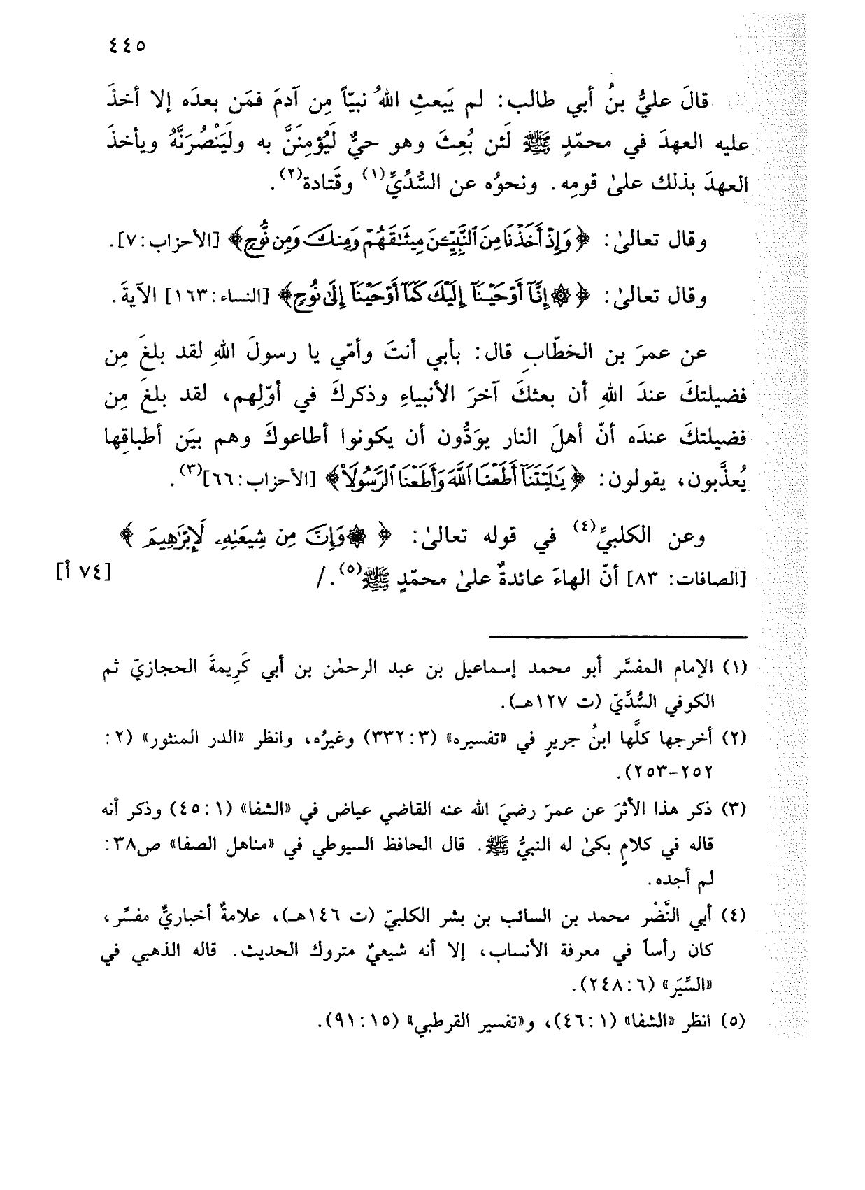 وعن الكلبي في قوله تعالى: (*وإن من شيعته لإبراهيم) [الصافات: 83] أن الهاء عائدة على محمد صلى الله عليه وسلم./