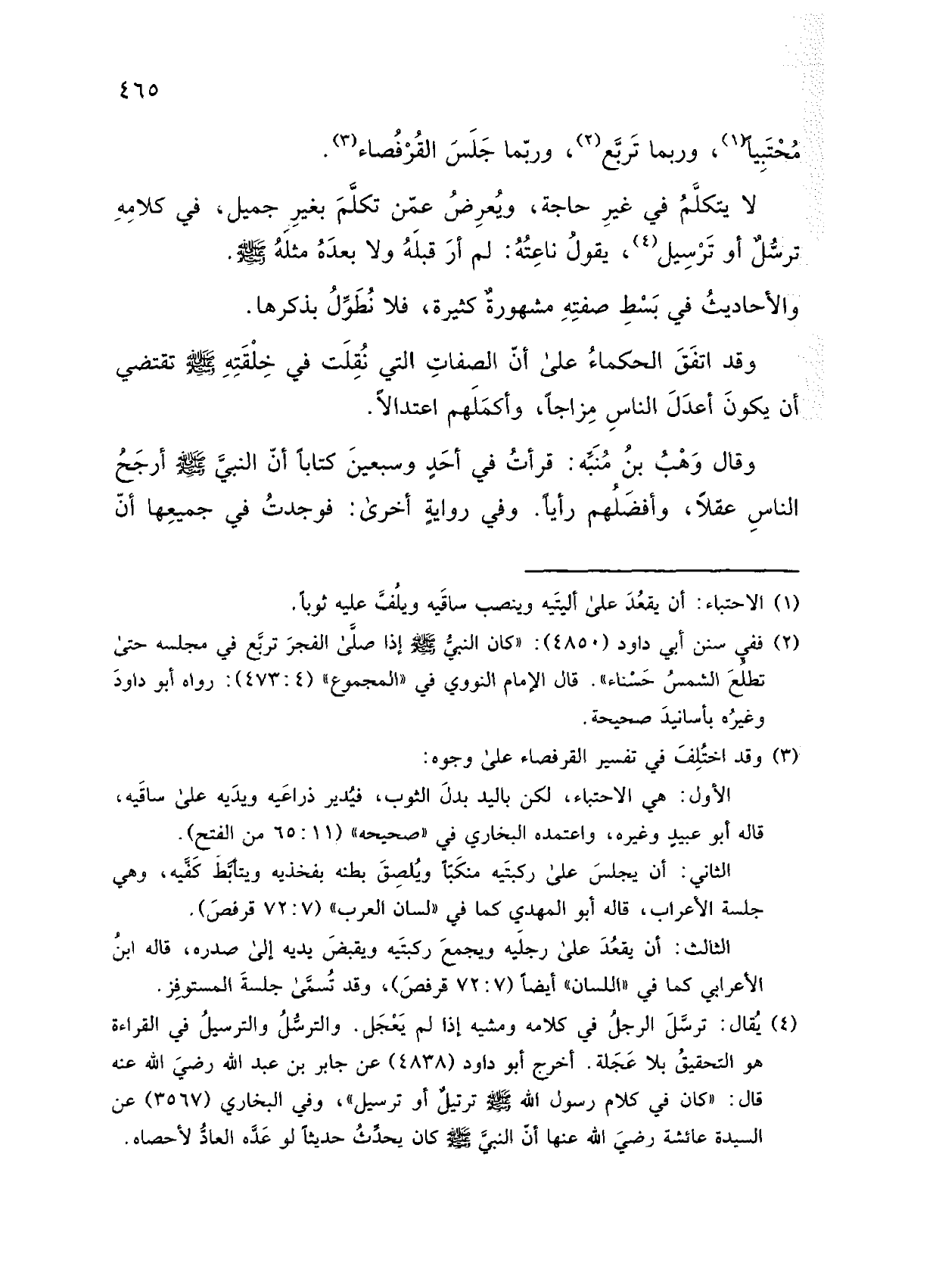 محتبيا، وربما تربع، وربما جلس القرفصاء.