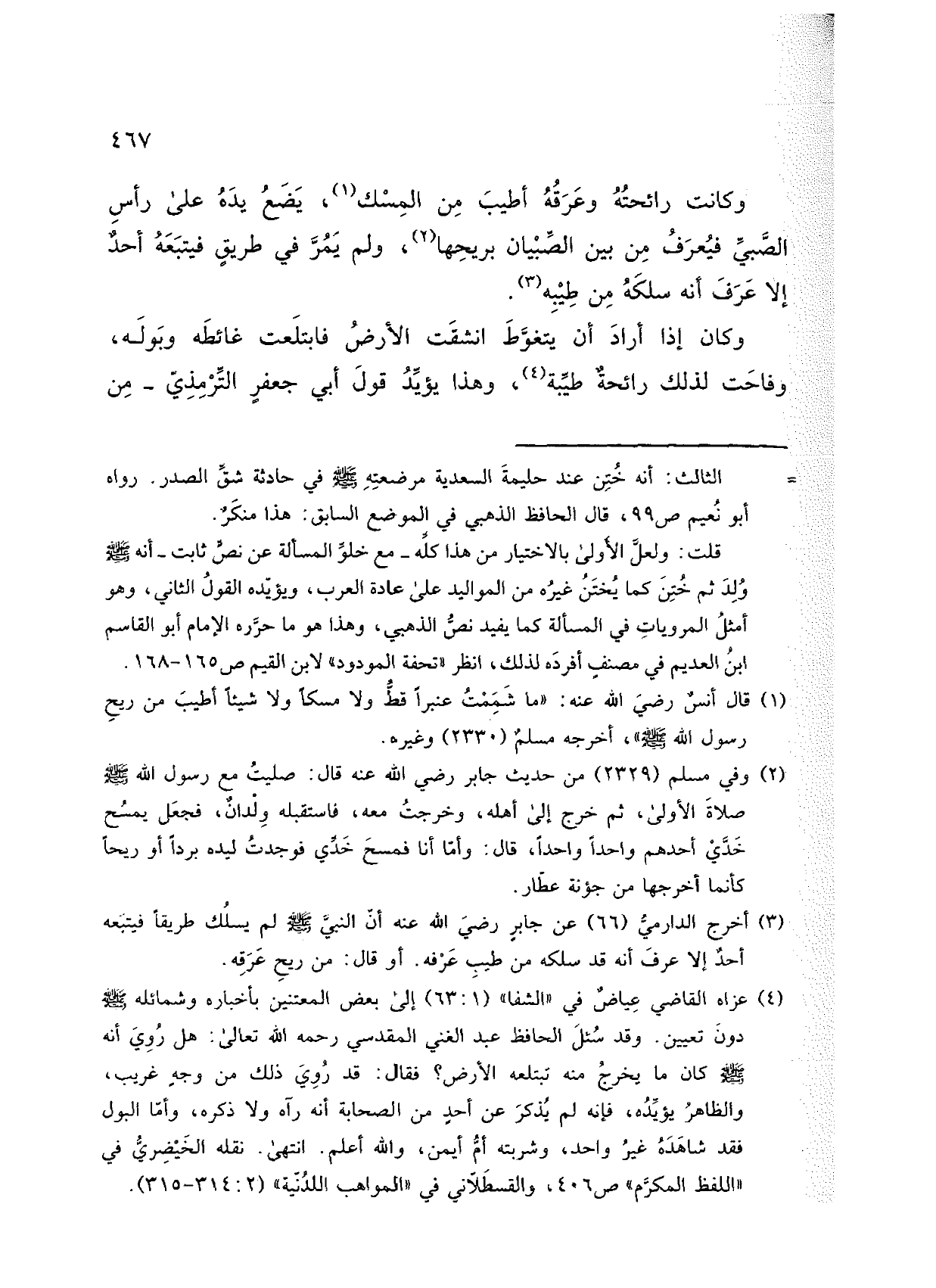 وكانت رائحته وعرقه أطيب من المسك، يضع يد على رأس الصبي فيعرف من بين الصبيان بريحها، ولم يمر في طريق فيتبعه أحد إلا عرف أنه سلكه من طيبه.