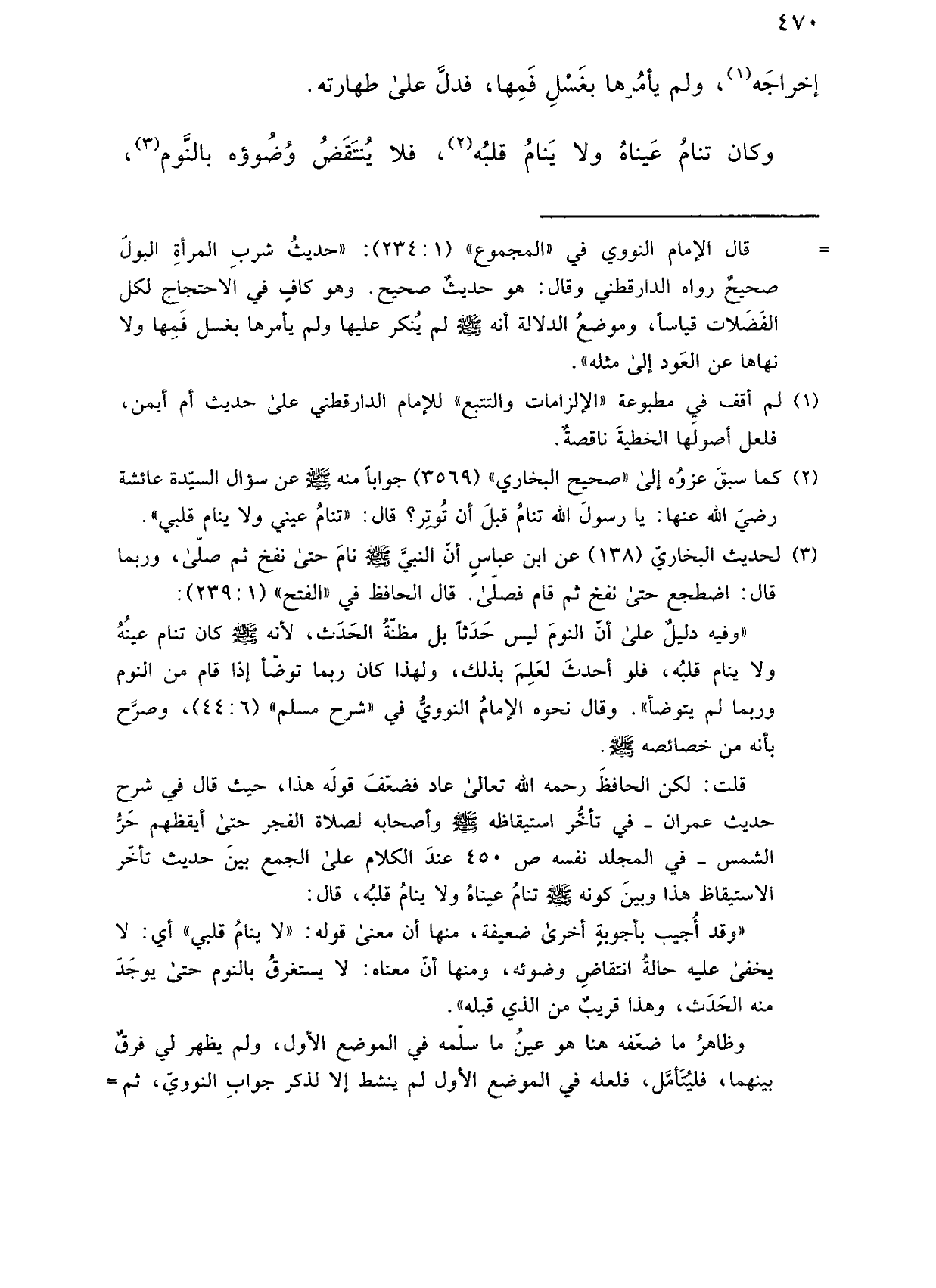 وكان تنام عيناه ولا ينام قلبه، فلا ينتقض وضوؤه بالنوم،